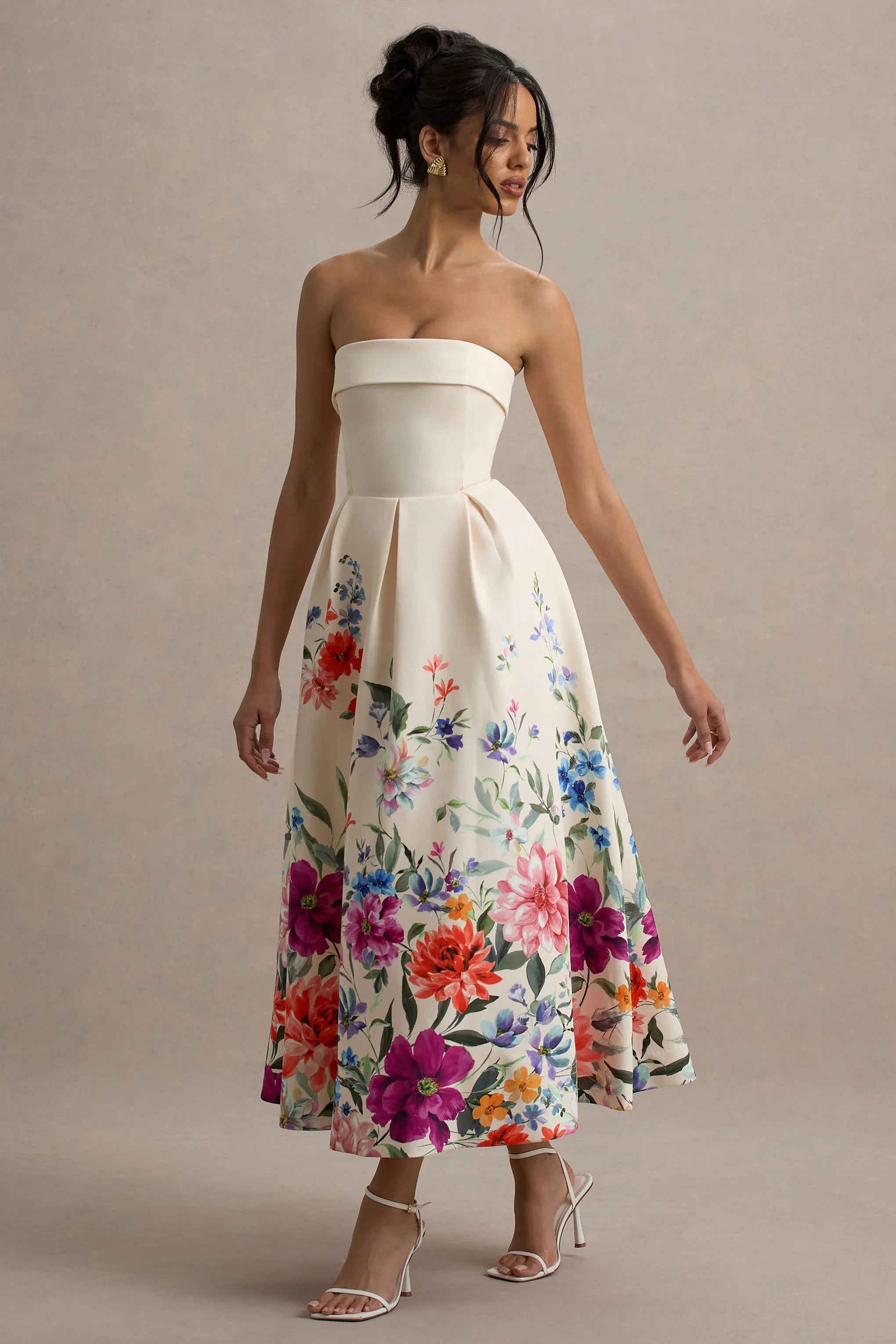 You name the occasion, we have the perfect dress. Crafted in a light pinkfloral shade of our premium stretch crepe, Annalise effortlessly compliments every skin tone. Beautifully flowing with a cinched in waist, this midi dress boasts a pleated skirt that creates an elegant sense of movement. For a timeless race day look, try styling yours with some simple gold earrings and strappy stilettos.