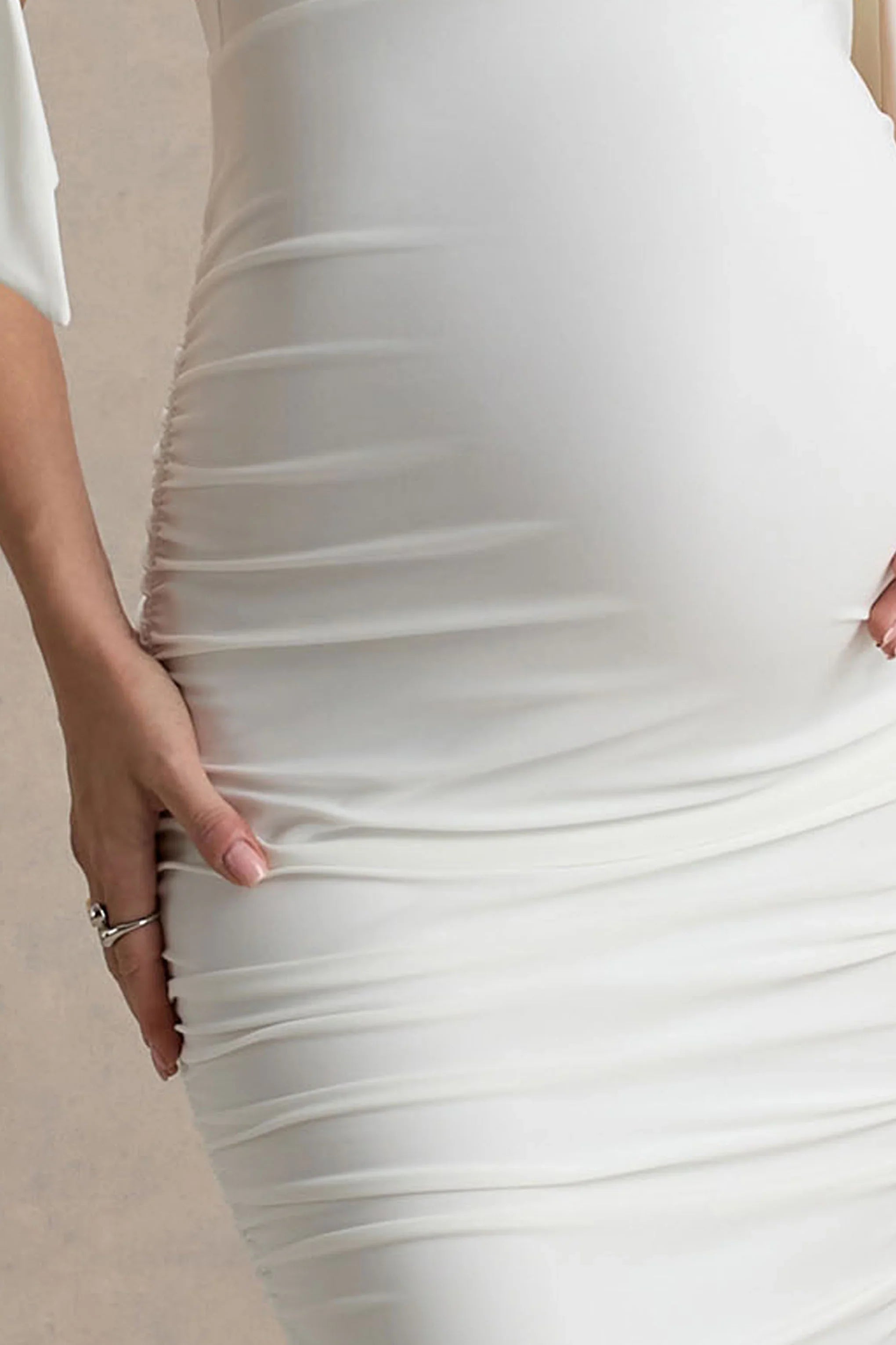 For an elegant yet playful look, Chandelier is the dress for you. This midi is cut in a bold white shade of our premium stretch jersey, for an ultra flattering and sculpting finish. Designed with an elegant bardot neckline with statement bow sleeves, this head turning piece is delicate and feminine. The ruched details are perfectly placed to shape your figure gorgeously. For your next special occasion Chandelier is the perfect choice.
