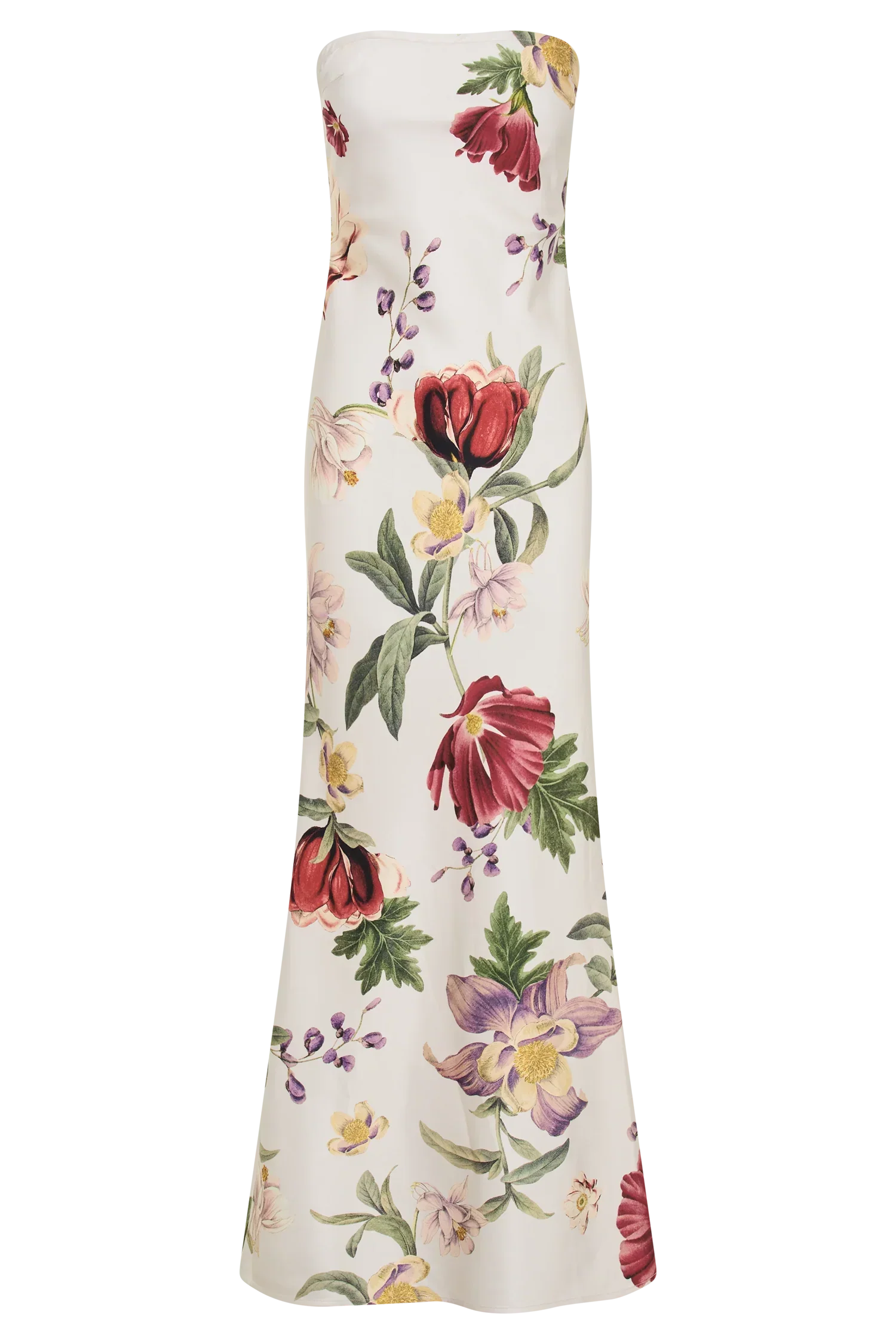 Presenting the CLAUDETTE Strapless Satin Maxi Dress, a stunning blend of elegance and allure. With its strapless design, it exudes timeless sophistication while allowing you to showcase your shoulders with grace. Crafted to maxi length, this dress elongates the silhouette for a flattering look that commands attention. Made from luxurious satin fabrication, it offers a lustrous finish that catches the light with every movement. Featuring a printed design that adds a touch of whimsy and charm, it ensures you stand out from the crowd. The fishtail hem adds drama and movement, while the bias cut enhances the fluidity of the silhouette. Whether attending a formal event or a chic soirée, the Claudette promises to make a statement with its undeniable allure and refined elegance.