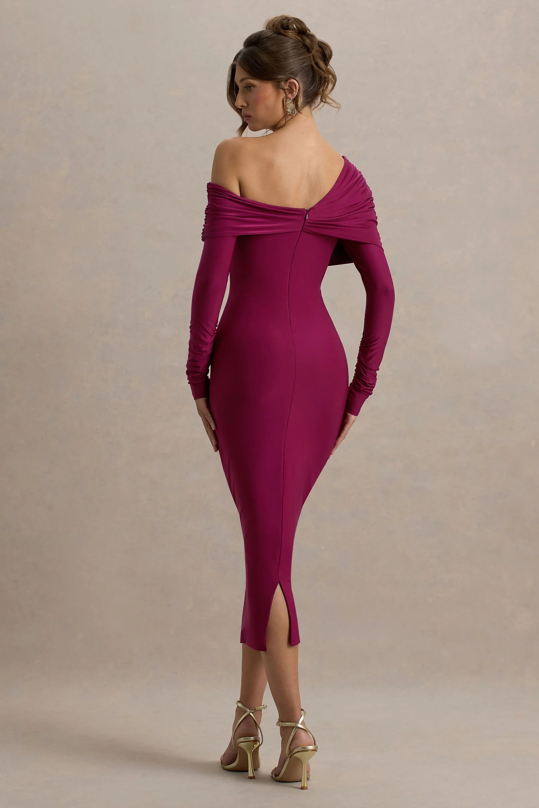Introducing the Cleo midi, a stand out staple that everyone needs in the wadrobe. Curated in our premium jersey in a deep shade of burgundy, this piece will flatter your figure like no other. Finished with a twisted, asymmetric neckline to add an eye-catching detail to this classic piece. Perfect for date nights or girl's nights out.