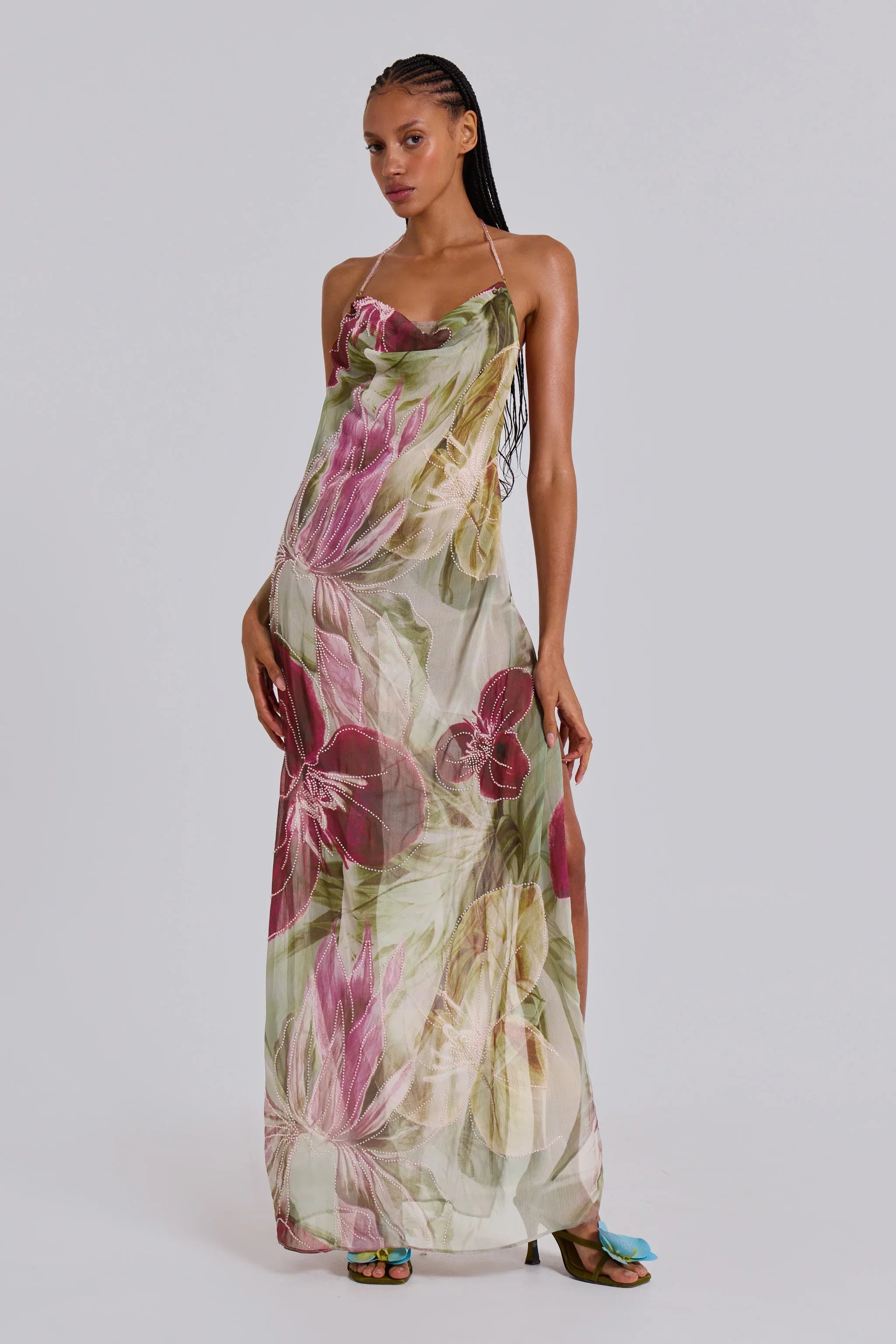 Dahlia Hand-Beaded Backless Chiffon Maxi Dress