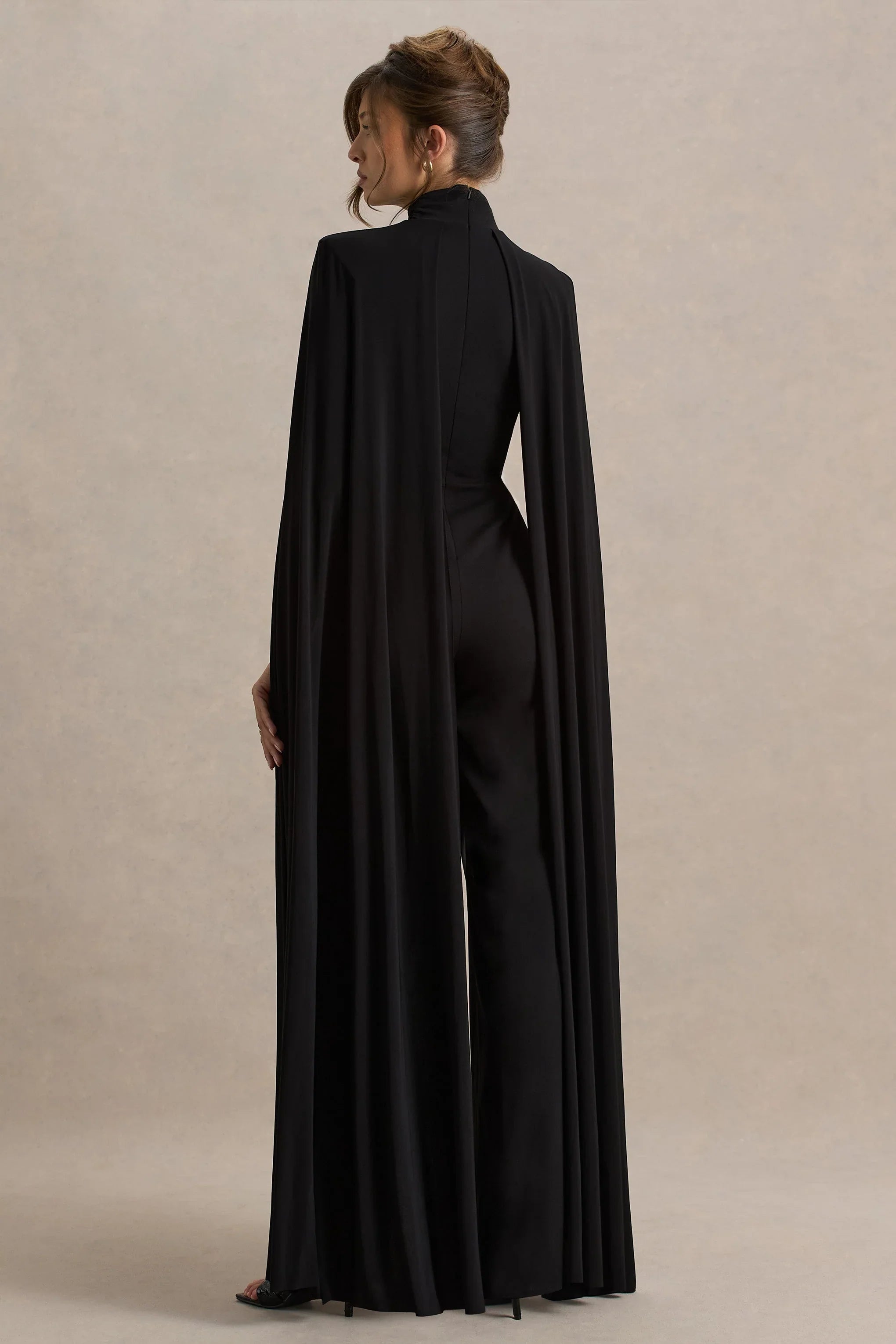 Tailored to command attention, Dulcet is the epitome of sleek sophistication. Cut from our figure-enhancing premium stretch jersey in a classic shade of black, this structured jumpsuit is bold and exudes confidence. Featuring a high neckline and statement shoulder pads, Dulcet sculpts a sharp silhouette. The dramatic cape sleeves bring dramatic edge and graceful movement with every step. Dulcet is your go-to for moments that call for nothing less than unforgettable.