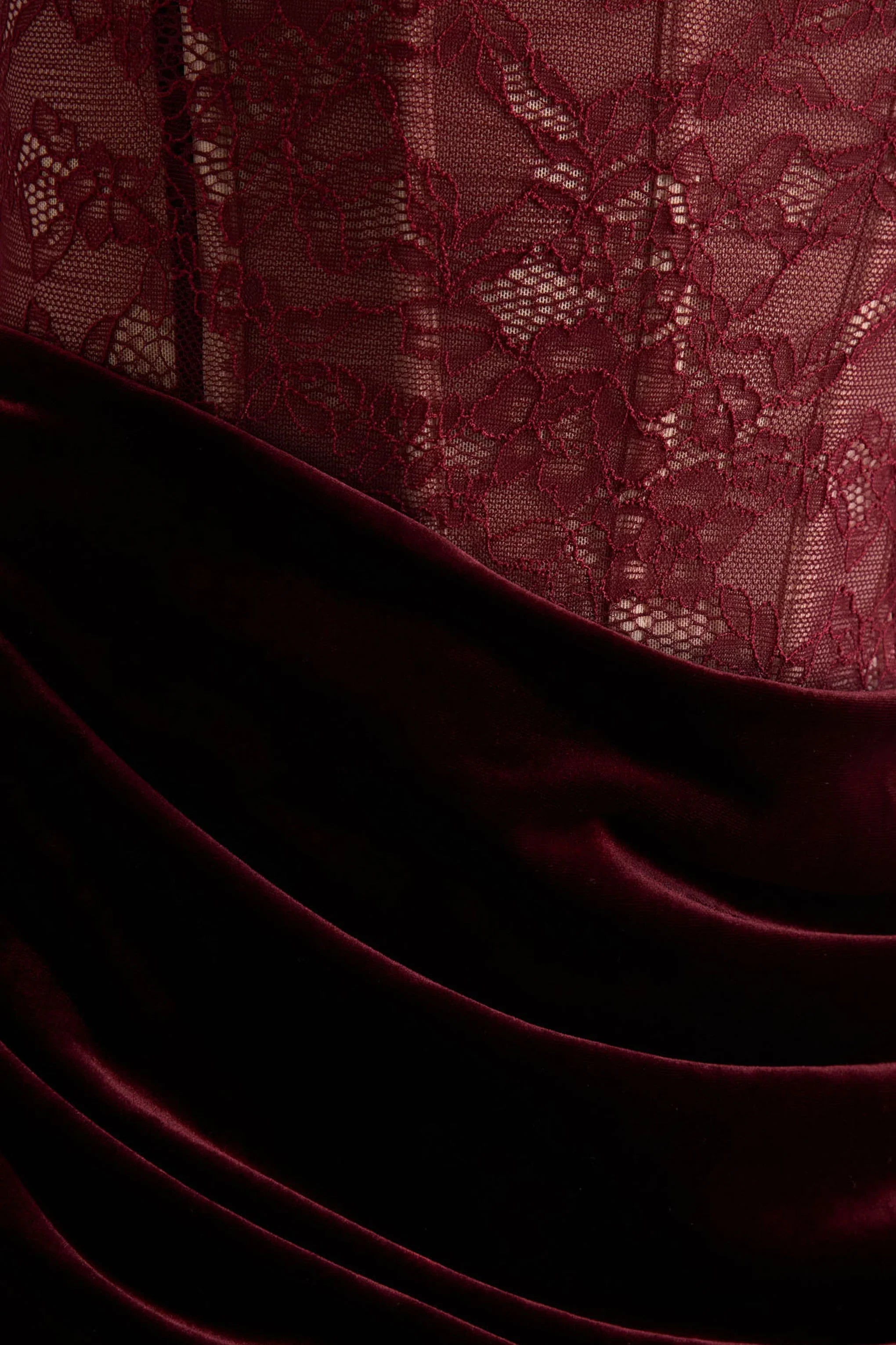Premium jersey in lace and velvet in Burgundy (88% Polyester, 12% Elastane)