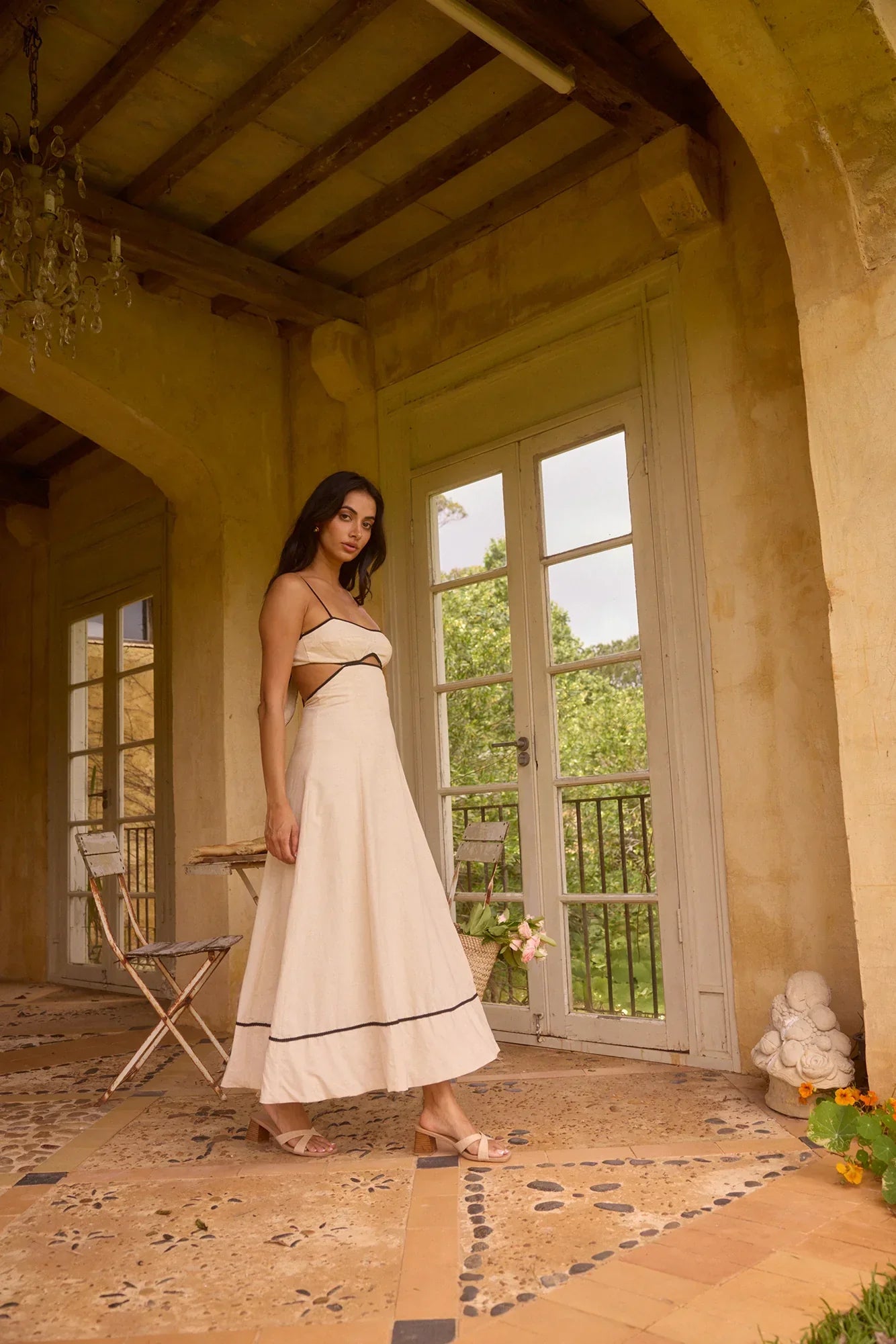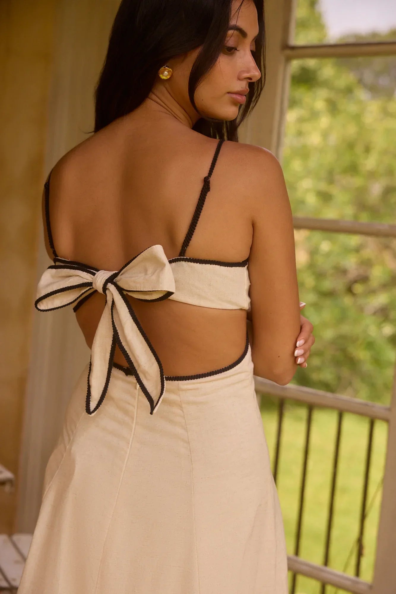 The Floating Orchid Maxi Dress in white is a show-stopping choice for any occasion, combining elegance with a touch of modern flair. Featuring a bralette-style bust and a gracefully flowing skirt, this dress creates a beautifully flattering silhouette that moves with you. The black outlining adds a striking contrast to the crisp white fabric, giving this maxi dress a unique and eye-catching edge. Perfect for everything from garden parties to evening events, the Floating Orchid Maxi Dress can be effortlessly styled up with heels and jewelry or down with simple flats for a more relaxed look.