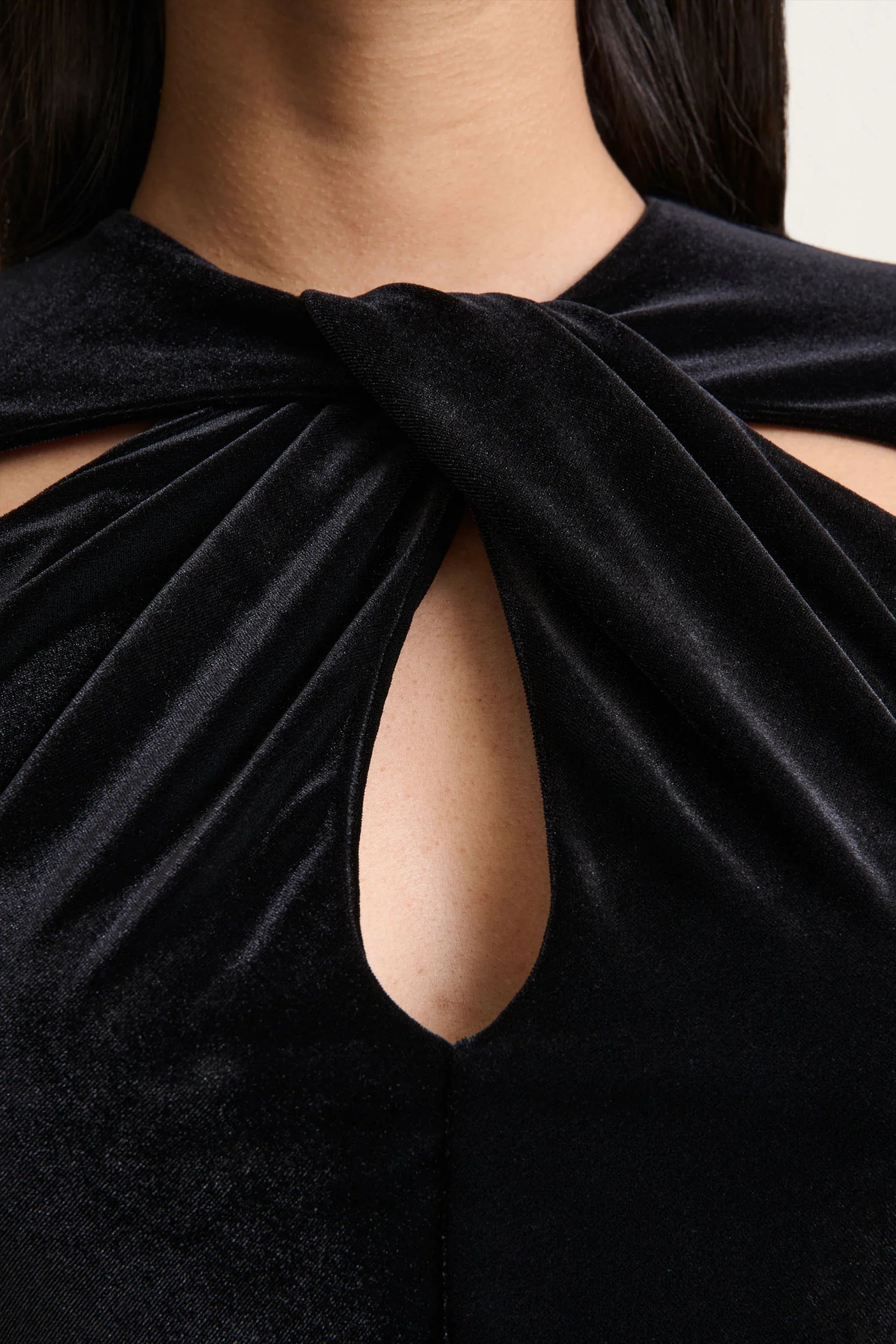 Francine is the definition of understated allure. Crafted from our premium velvet in a classic shade of black, this midi-length design combines timeless sophistication with a contemporary edge. The round neckline offers a refined touch, while the chest cut-out details add a hint of drama. Elegant yet effortlessly striking, Francine is made for evenings that call for confidence and modern femininity.