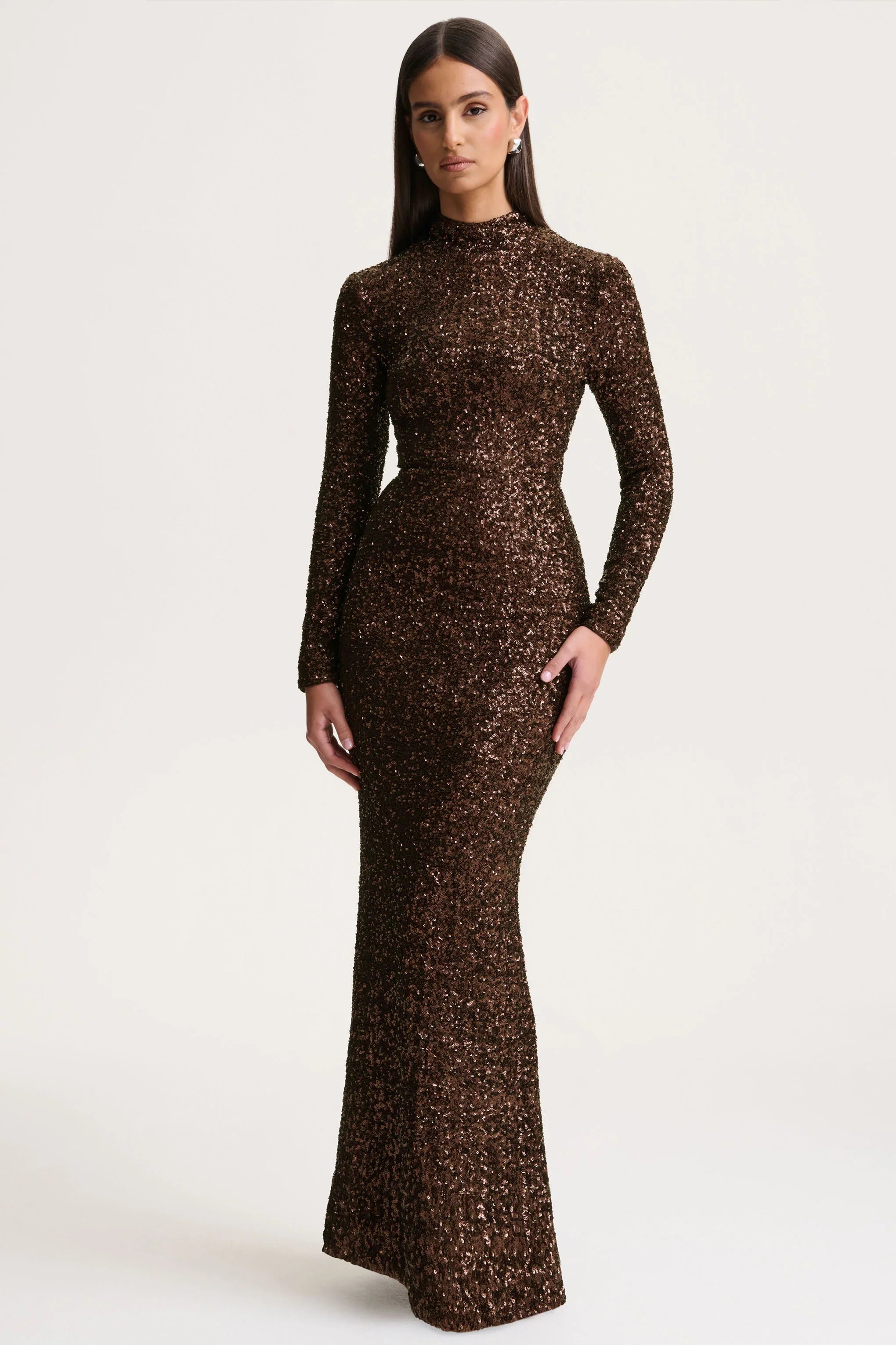 Get prepared to sparkle this party season in our latest aptly named maxi dress Galaxy. Presented in a gorgeous premium sequin, this piece features a flattering turtle neck and long sleeves to bring out the perfect blend of sophistication and comfort. Galaxy is the ideal choice for everything from red carpet events to exclusive parties.