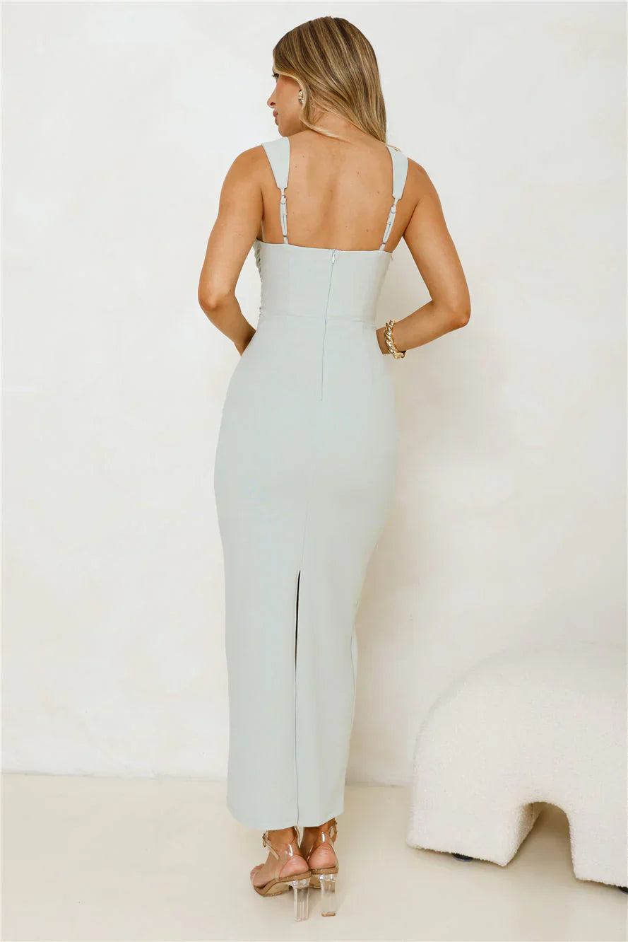 The Garden Reverie Maxi Dress features delicate flower brooches and gathered sides, creating a beautifully textured look that's both elegant and timeless. Perfect for garden parties or evening events, this dress pairs effortlessly with heels and simple jewellery for a sophisticated yet dreamy look.
