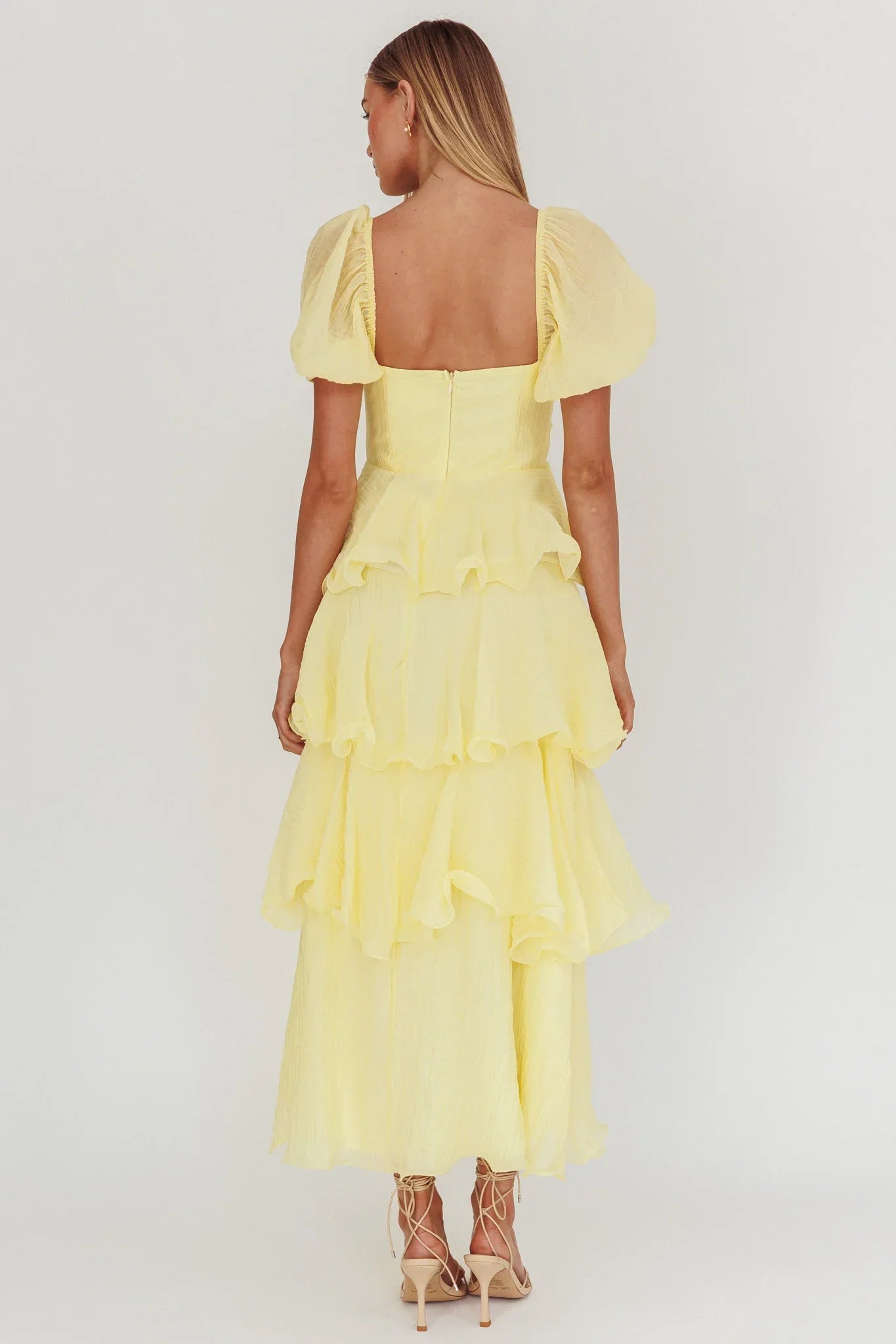 Make an entrance in our stunning Giavana midi dress. It featured a strapless design and tiered layers throughout. It's perfect for a bridal shower or a special event. Team it with strappy, nude heels and a clutch for a look that is unforgettable.