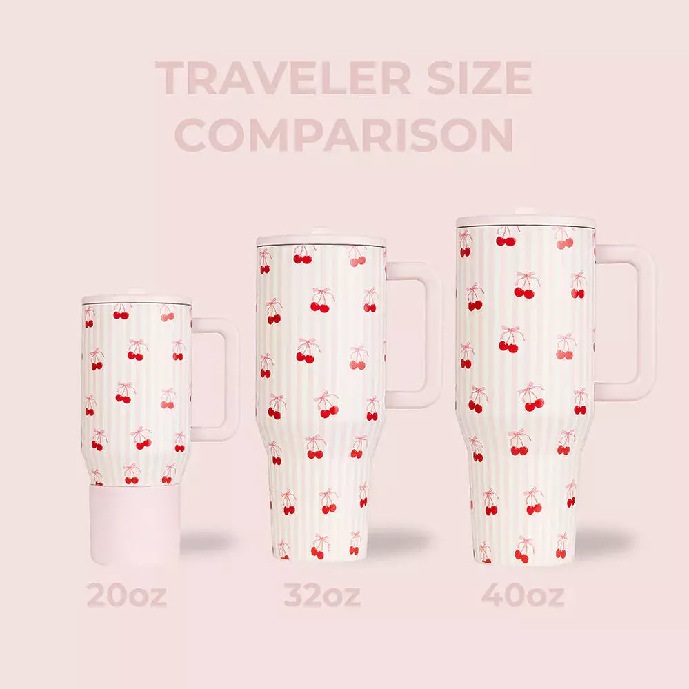 The 20 oz Traveler Tumbler is completely leakproof, cupholder compatible, and has a hygienic circular flip straw for easy sipping. The 20 oz Traveler comes with a removable silicone boot that’s perfect for protecting your bottle and your surfaces. Perfect for both you and your mini me’s, this new size is a must-have in your hydration lineup.