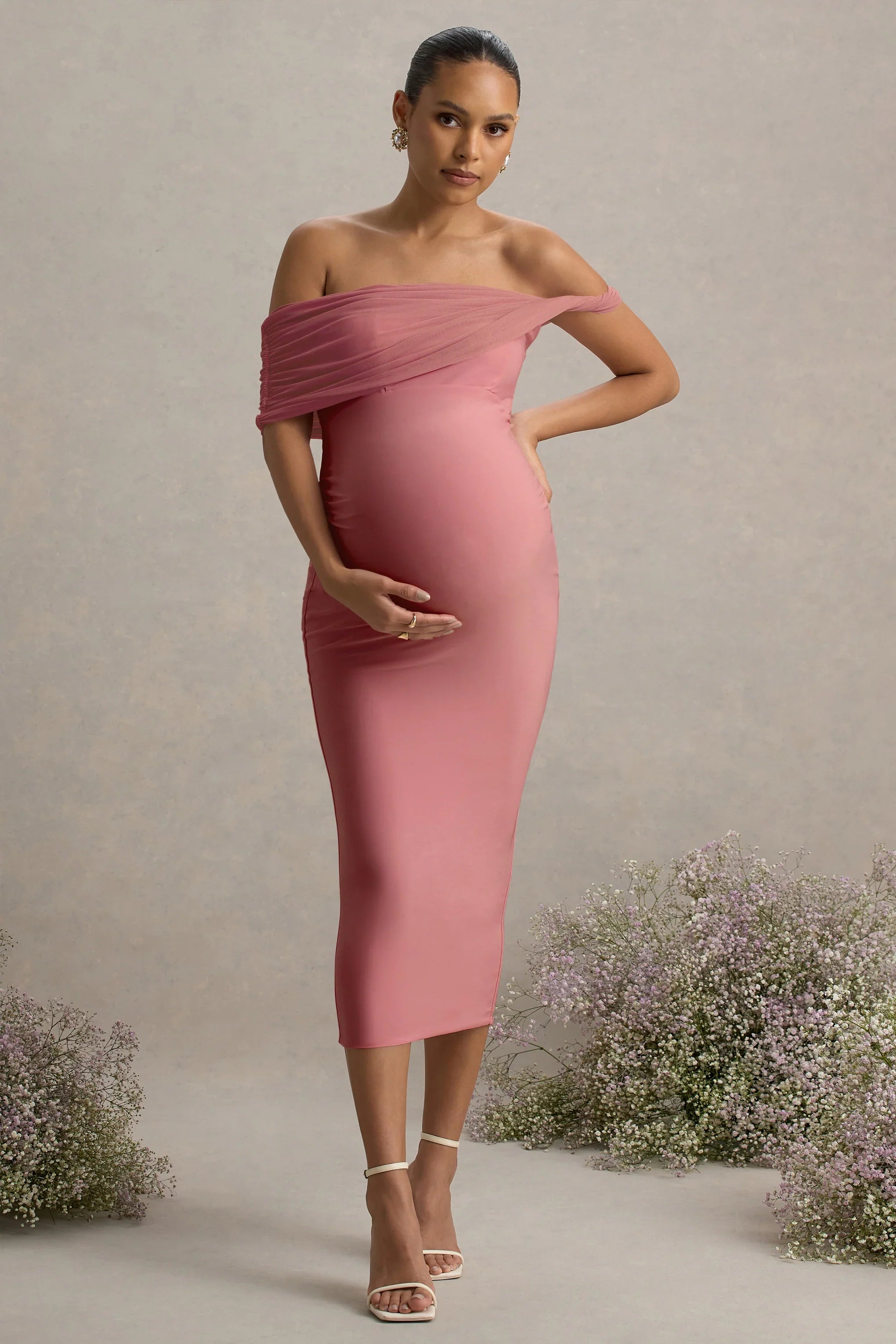 Introducing our latest midi, Jen. Crafted in our premium stretch jersey to hug your figure seamlessly, and finished with a detailed mesh neckline. This minimalistic piece features a mesh, twist sleeve detail to set it apart from the rest, in a soft shade of pink. Jen is the perfect dress for any baby shower this season, pair with an elegant up do to tie the look together.