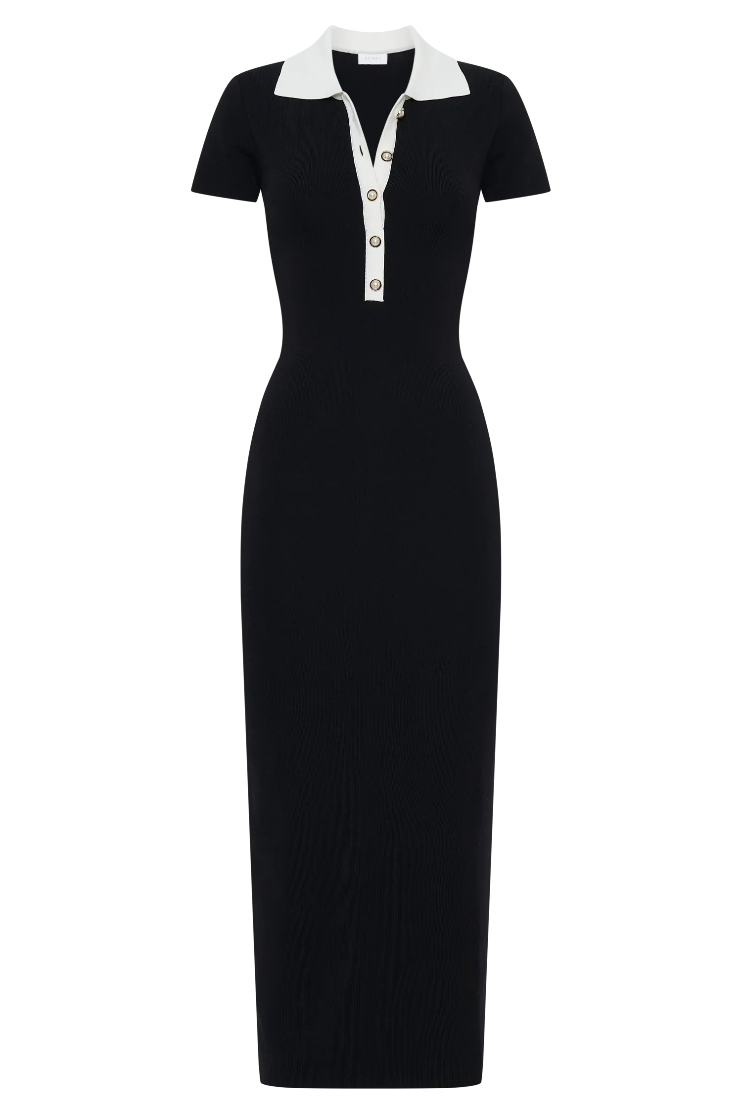 The JESSAMINE Collared Contrast Maxi Dress exudes effortless sophistication with a contemporary edge. Its V neckline and collared design offer a timeless allure, while the centre front non-functional placket and centre front buttons add a touch of classic elegance. With front functional pockets for added convenience and a maxi length silhouette, it strikes the perfect balance between style and practicality. The short sleeves provide a relaxed yet chic look, complemented by the contrast placket and collar for a modern twist. Crafted from unlined knit fabric, this dress ensures comfort without compromising on style. Perfect for any occasion, from casual outings to special events, the Jessamine promises to elevate your ensemble with its undeniable charm and versatility.