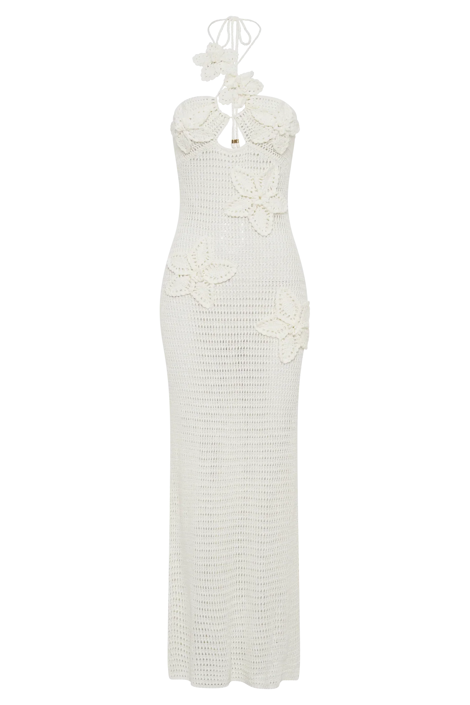 Elevate your style with the enchanting KYLA Floral Crochet Maxi Dress, a captivating piece that exudes femininity and grace. The functional halter design adds a touch of allure and allows for customisable styling, while the delicate crochet flower appliqué enhances the dress with a romantic and whimsical feel. Unlined for a lightweight and airy fit, this dress is perfect for warm-weather events. The fishtail hem shape adds a dramatic and elegant flair, creating a stunning silhouette that is sure to turn heads. With its maxi length, this dress offers a timeless and sophisticated look, making it ideal for special occasions or an elevated everyday ensemble. The Kyla Floral Crochet Maxi Dress is a versatile and captivating choice that embodies effortless charm and sophistication.