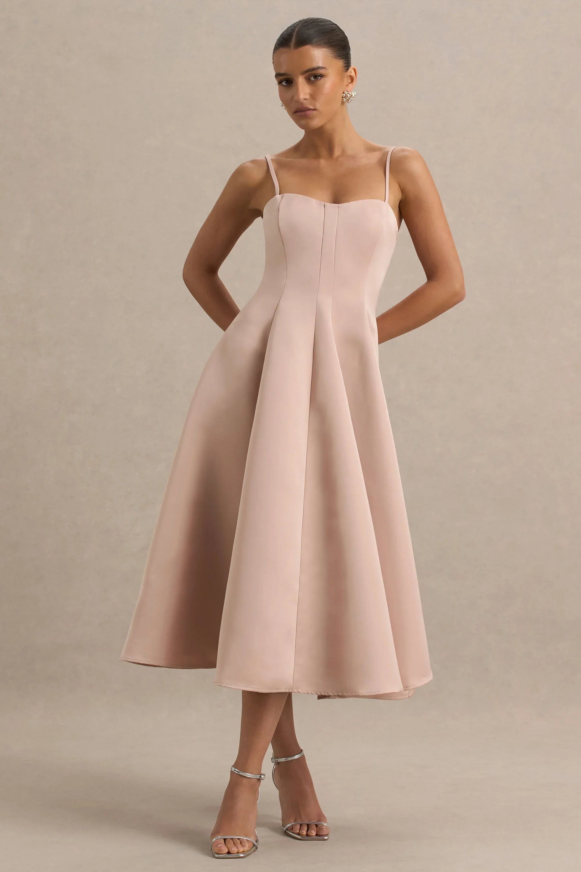 Make an effortlessly romantic statement in Mally. Designed in a soft powder blue hue and cut from our premium satin, this midi dress is the epitome of timeless elegance. The sweetheart neckline beautifully frames the decolletage, while the sleeveless design keeps the silhouette sleek and modern. Perfect for weddings, garden parties, or any special summer soiree.