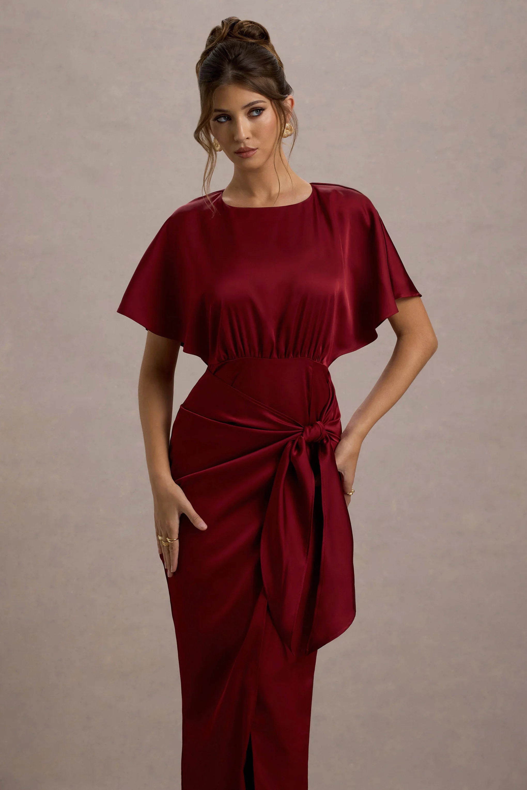 Mika is the epitome of effortless elegance, perfect for your next special occasion. Crafted from our port-hued premium satin, this midi flatters your silhouette with its classic wrap design. A high split adds a sultry touch, while the soft sheen of the satin ensures you shine all night long. The flowing fabric moves gracefully with every step, making Mika the ideal choice for a sophisticated evening. Pair it with delicate jewellery and strappy heels to keep this captivating dress in the spotlight at your next event.