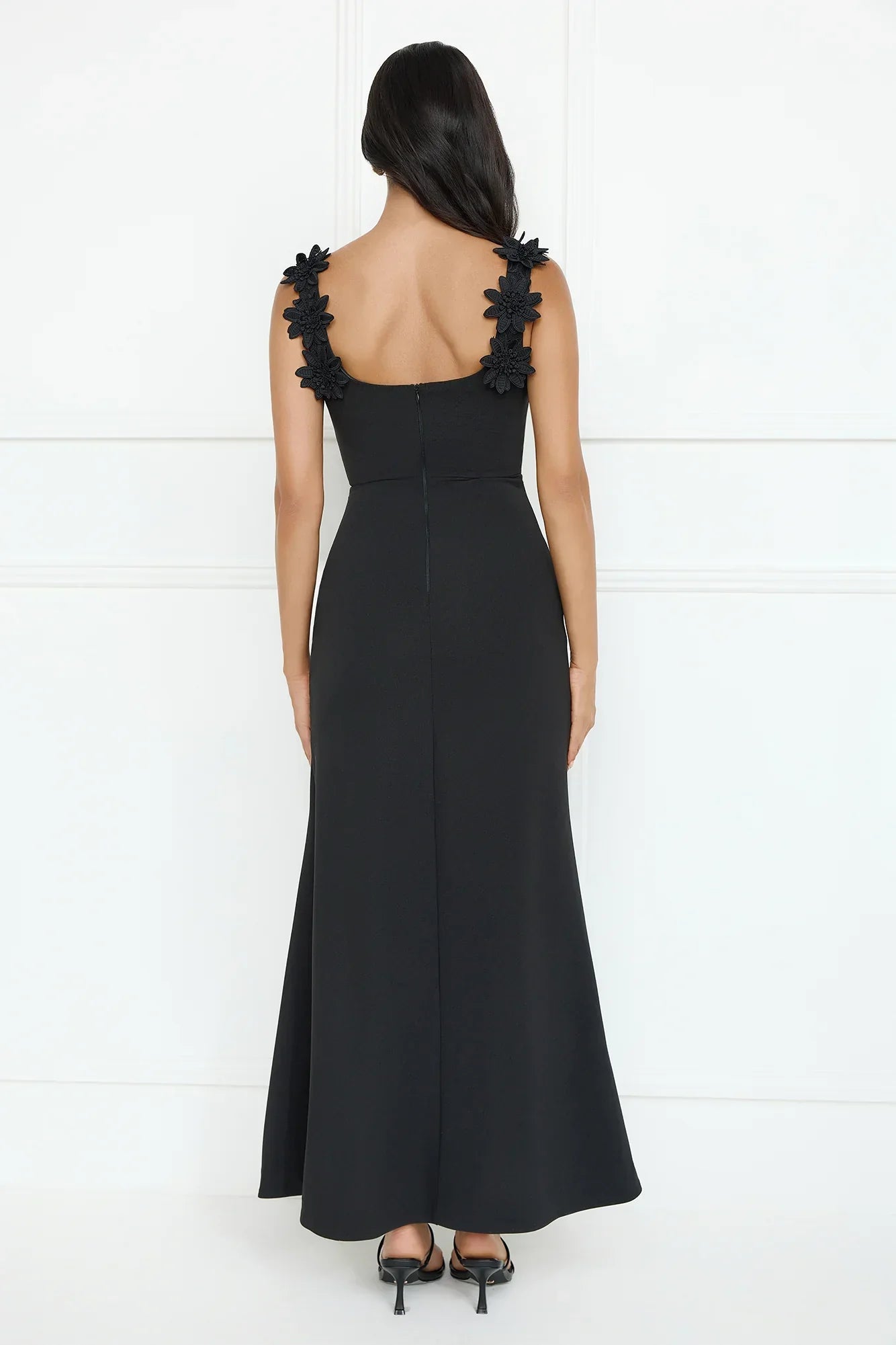 Be seen, be admired. The Moonlight Veil Maxi Dress features gorgeous floral appliques including on the shoulder straps and a split to the skirt. Style with heels for a fancy event and impress.