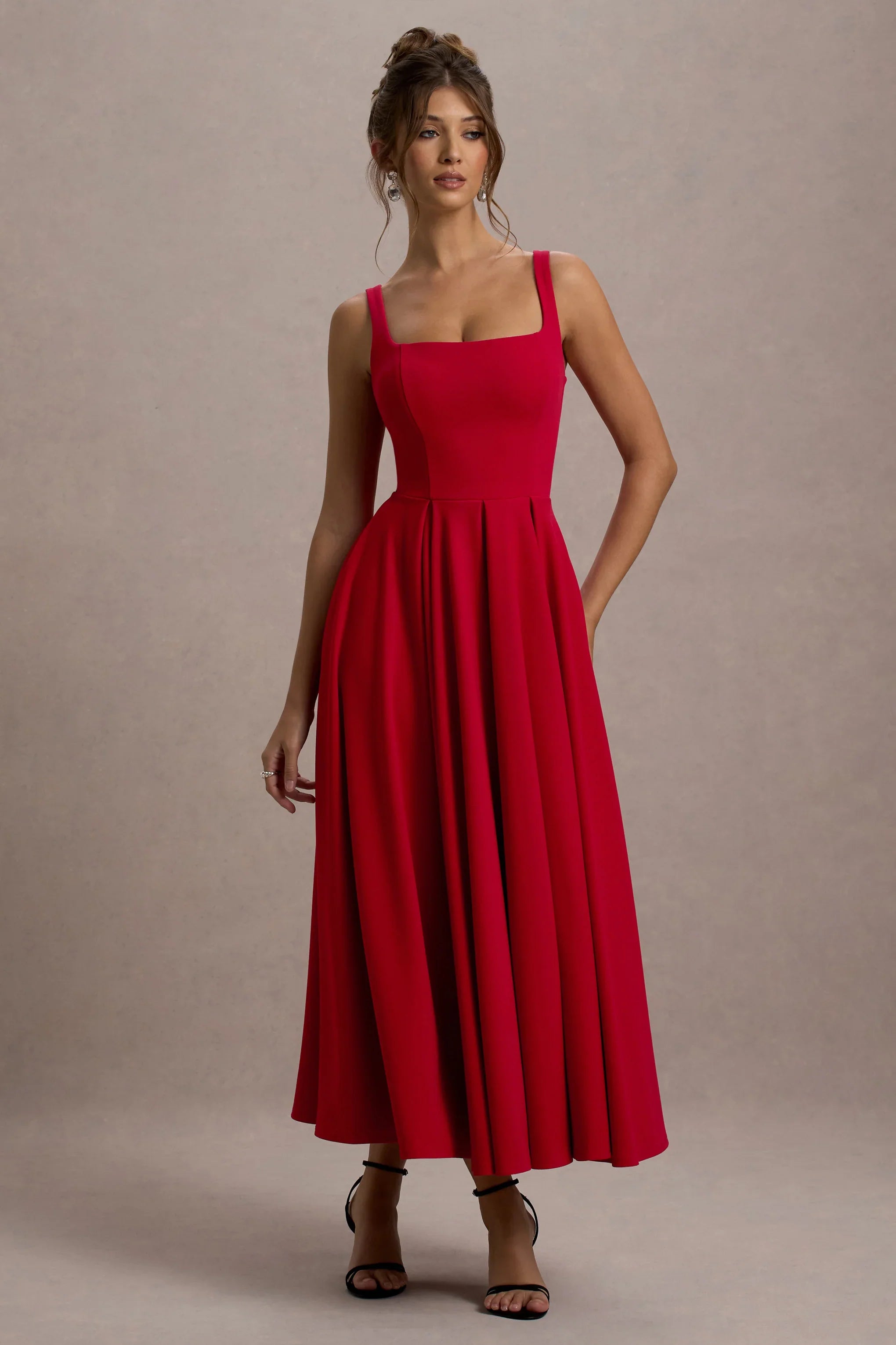 Exude a feminine charm in Parina, our romantic red midi dress. Designed in a premium scuba crepe, this playful piece features a supportive square neckline and flowing pleated skirt. A stand-out staple, Parina is proof that keeping it simple doesn’t mean playing it safe.