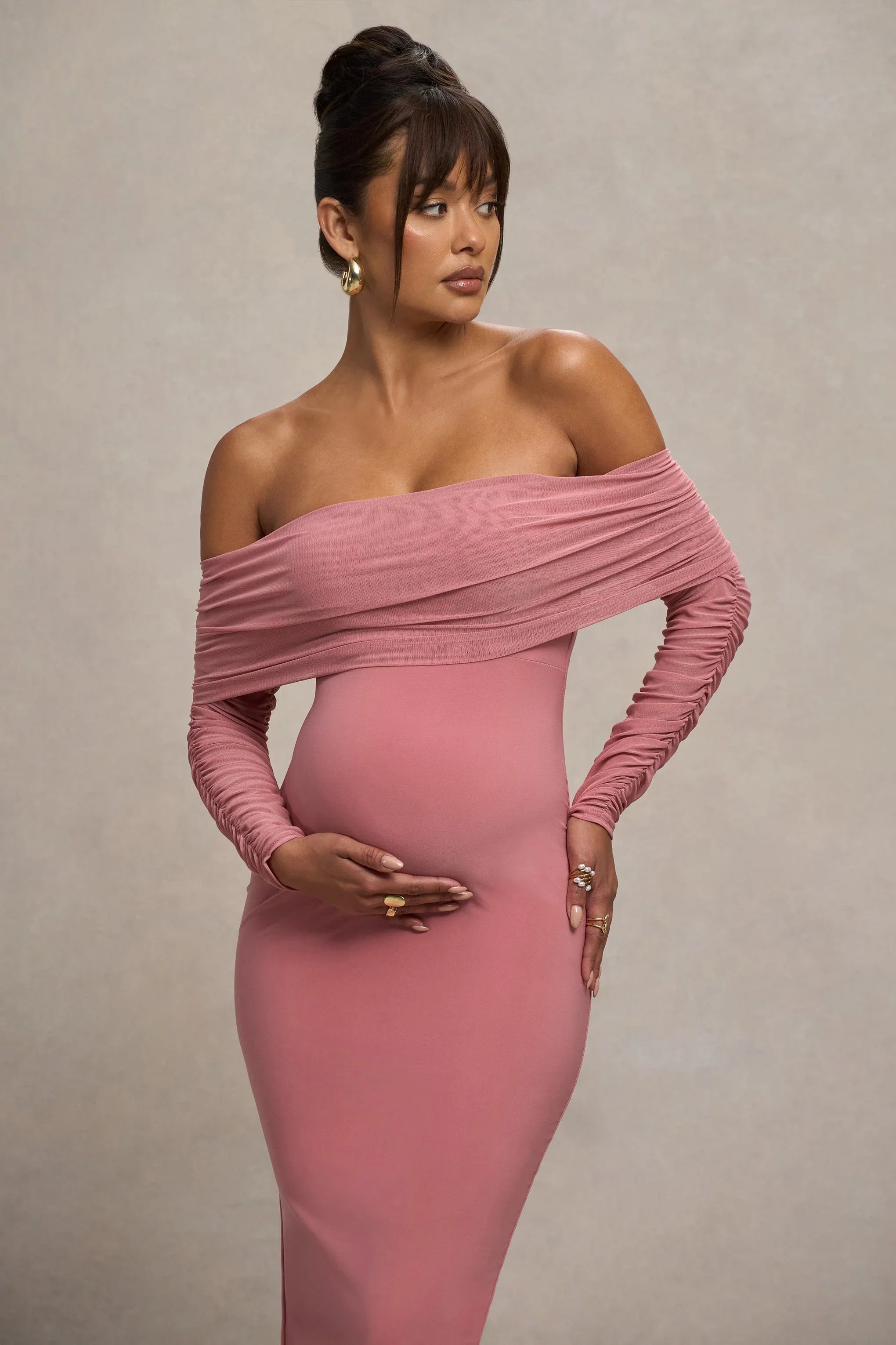 Classic and sophisticated, Patiently Waiting is the perfect option for your upcoming baby shower. Crafted in a soft blush pink, this maternity midi dress is defined by a mesh bardot neckline and long, sheer sleeves. Keep Patiently Waiting at the forefront by styling it with a sleek bun and strappy stilettos.