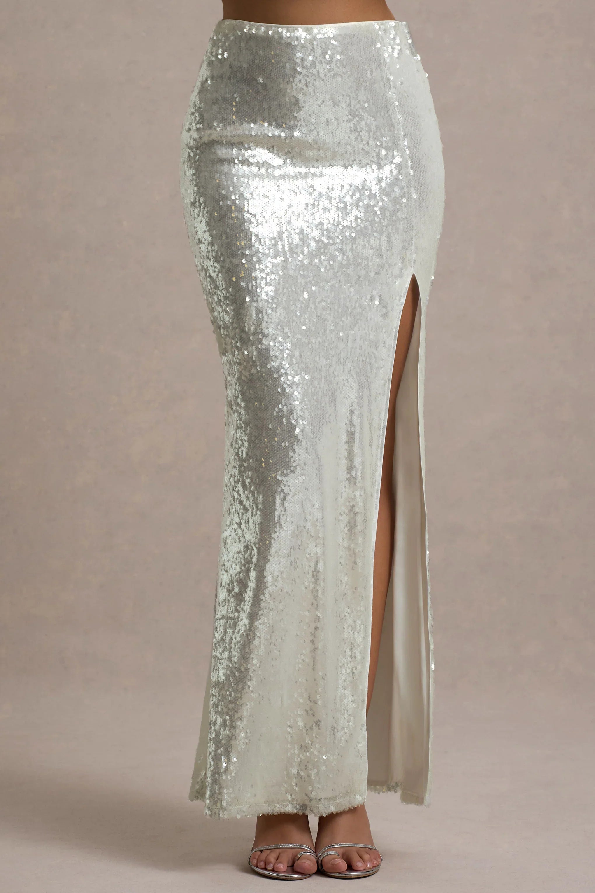 Raia is a stunning choice for your next special occasion, designed to make an unforgettable entrance. Crafted from our premium sand-hued sequins, this split maxi skirt shimmers with every step, creating an effortlessly glamorous look. The high slit adds a daring touch, while the sleek silhouette is designed to hug your curves beautifully. Pair Raia with our matching Solita long-sleeve crop top for a slick party look.