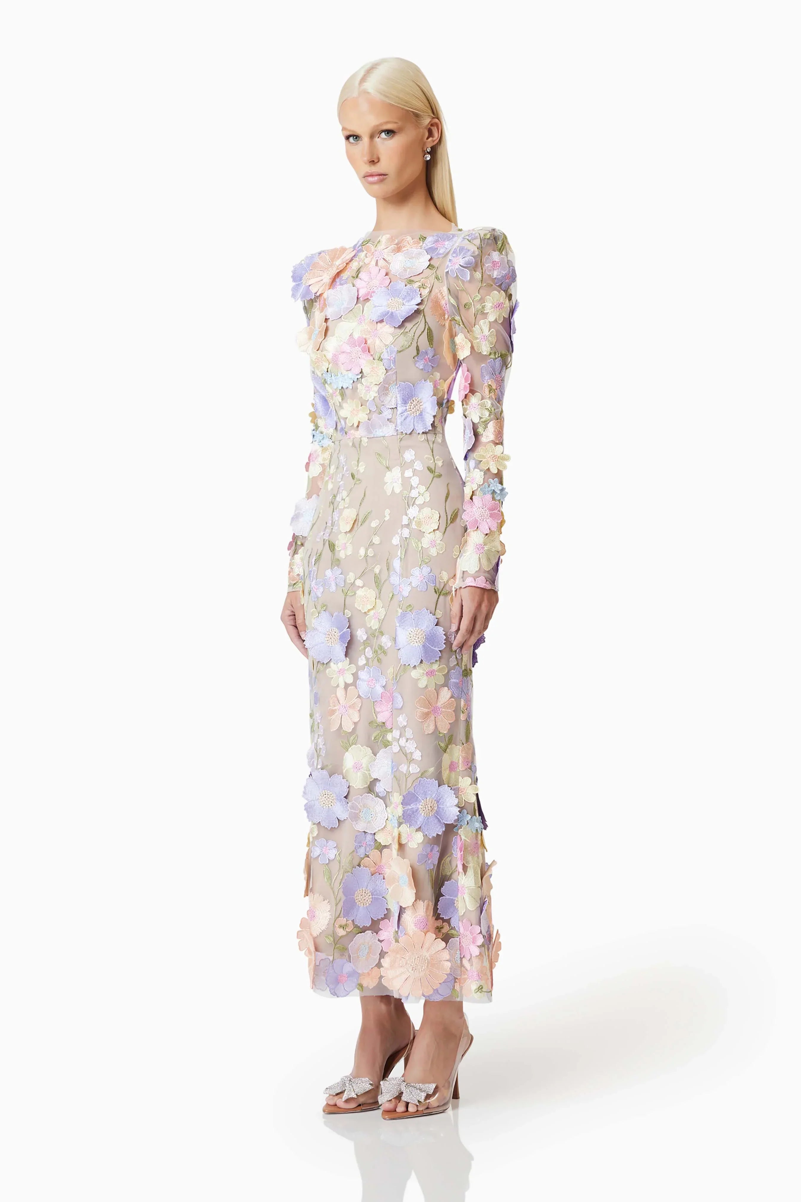 Introducing the Shannon Midi Dress, a symphony of color and floral elegance, the embodiment of women’s fashion. This floral long-sleeved midi dress is a stunning embodiment of Summer and Spring, with a colorful palette of purple, pink, orange, green, and yellow. The Shannon dress is exclusive to you with each dress having unique variation in floral placement, ensuring an individualised touch for every single dress.