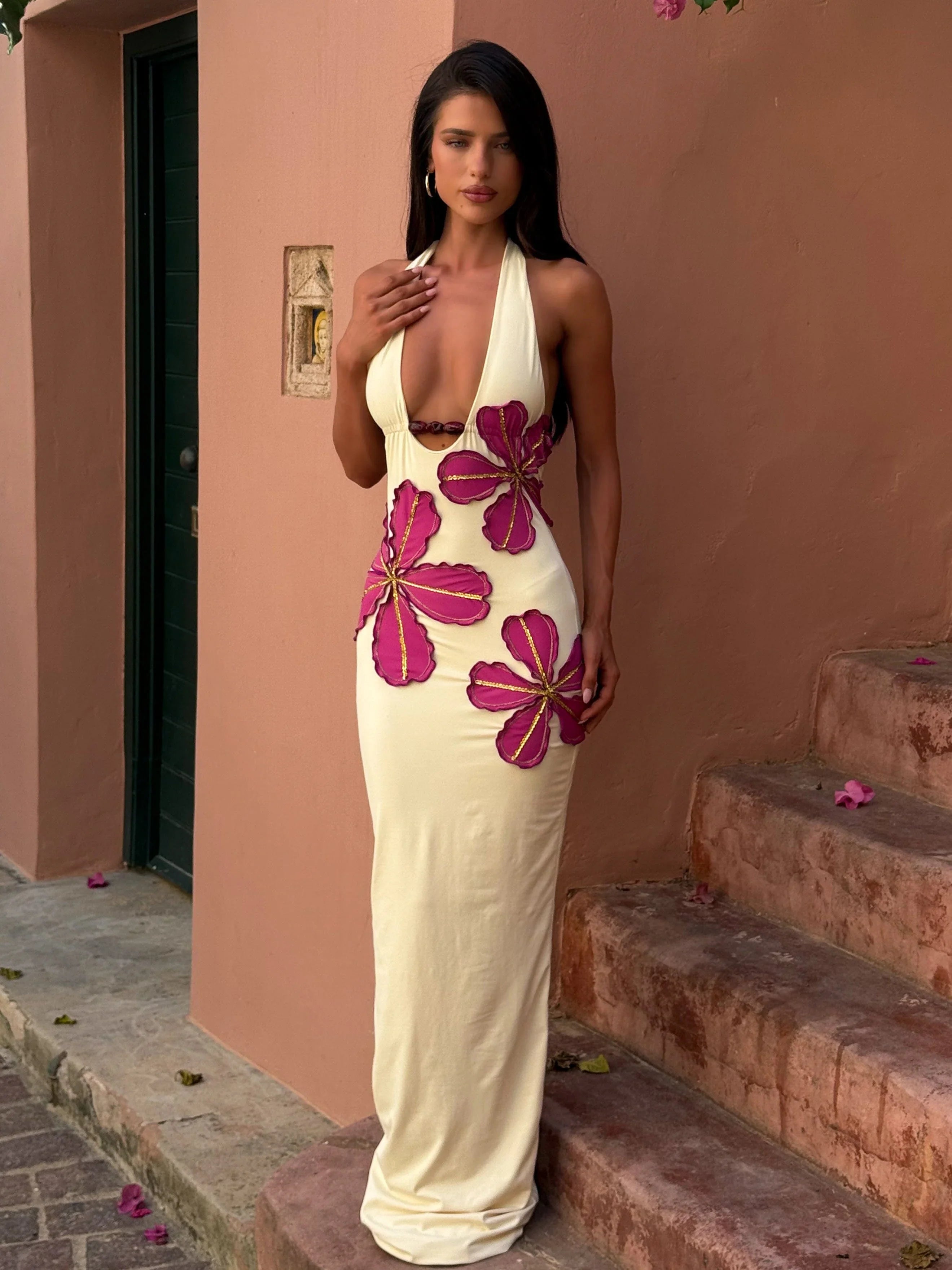 Designed in a floor-sweeping maxi length, this dress is your go-to for resort escapes, spring break, and dreamy vacation nights.