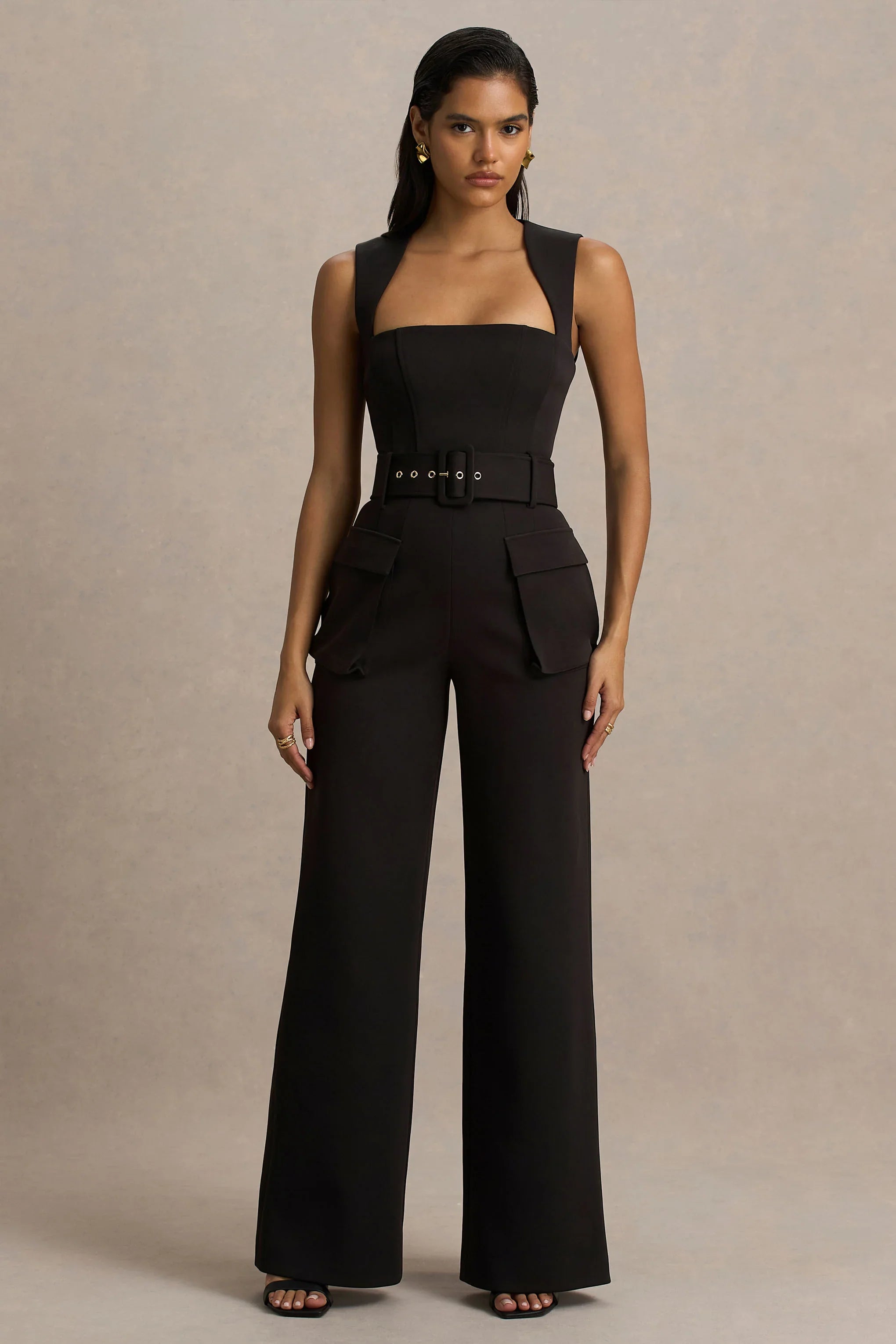 Step into sleek sophistication with Solice, a timeless piece that embodies effortless glam with an edge. Crafted from our premium black stretch crepe, this jumpsuit features a flattering square neckline and a daring open back detail that turns every entrance into a statement. Functional front pockets add a touch of modernity, while the tailored fit ensures you look polished from every angle. Perfect for nights out, parties, or any occasion where you want to make a chic, confident impression.