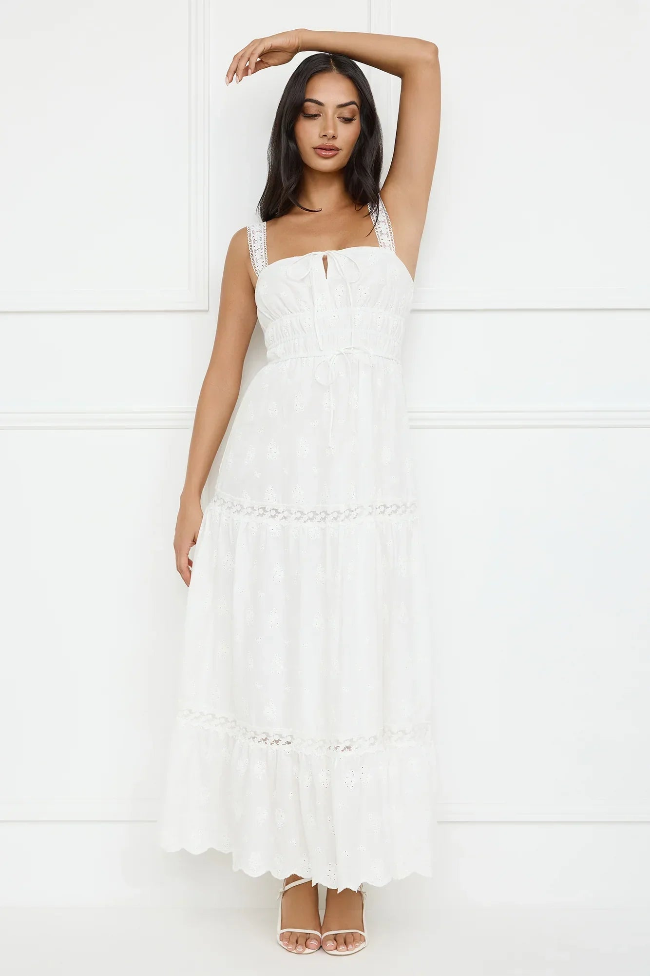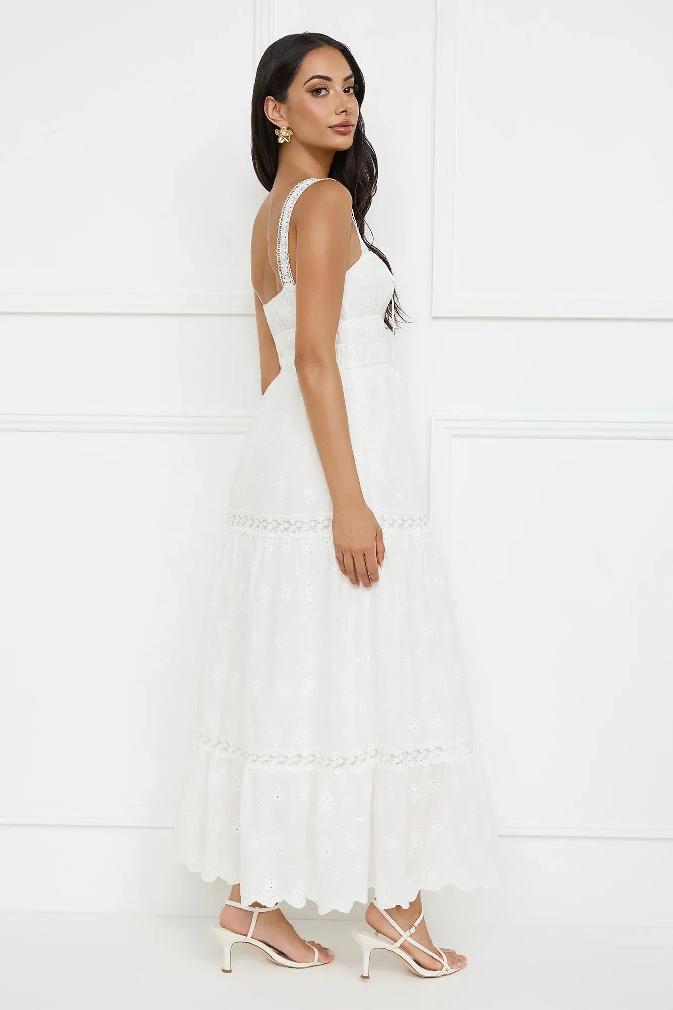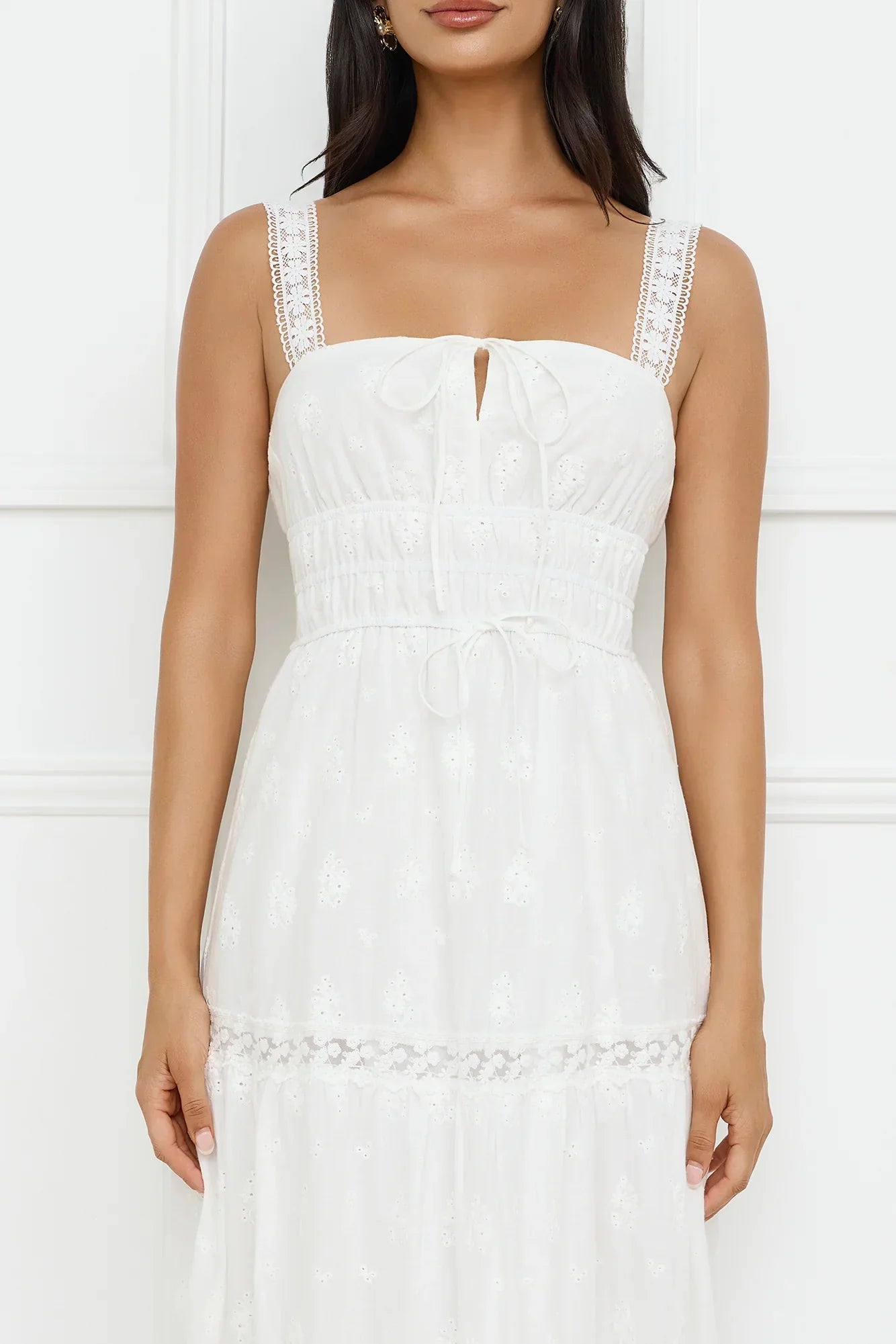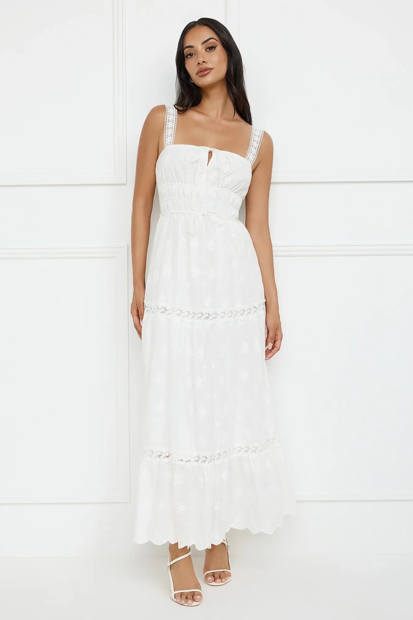 The Springtime Sun Maxi Dress features intricate embroidery and delicate lace details that add a touch of elegance. With an elastic bodice and flowy skirt, this dress offers both comfort and style that's perfect for outdoor events or a sunny day out. Pair it with sandals for an effortless look!