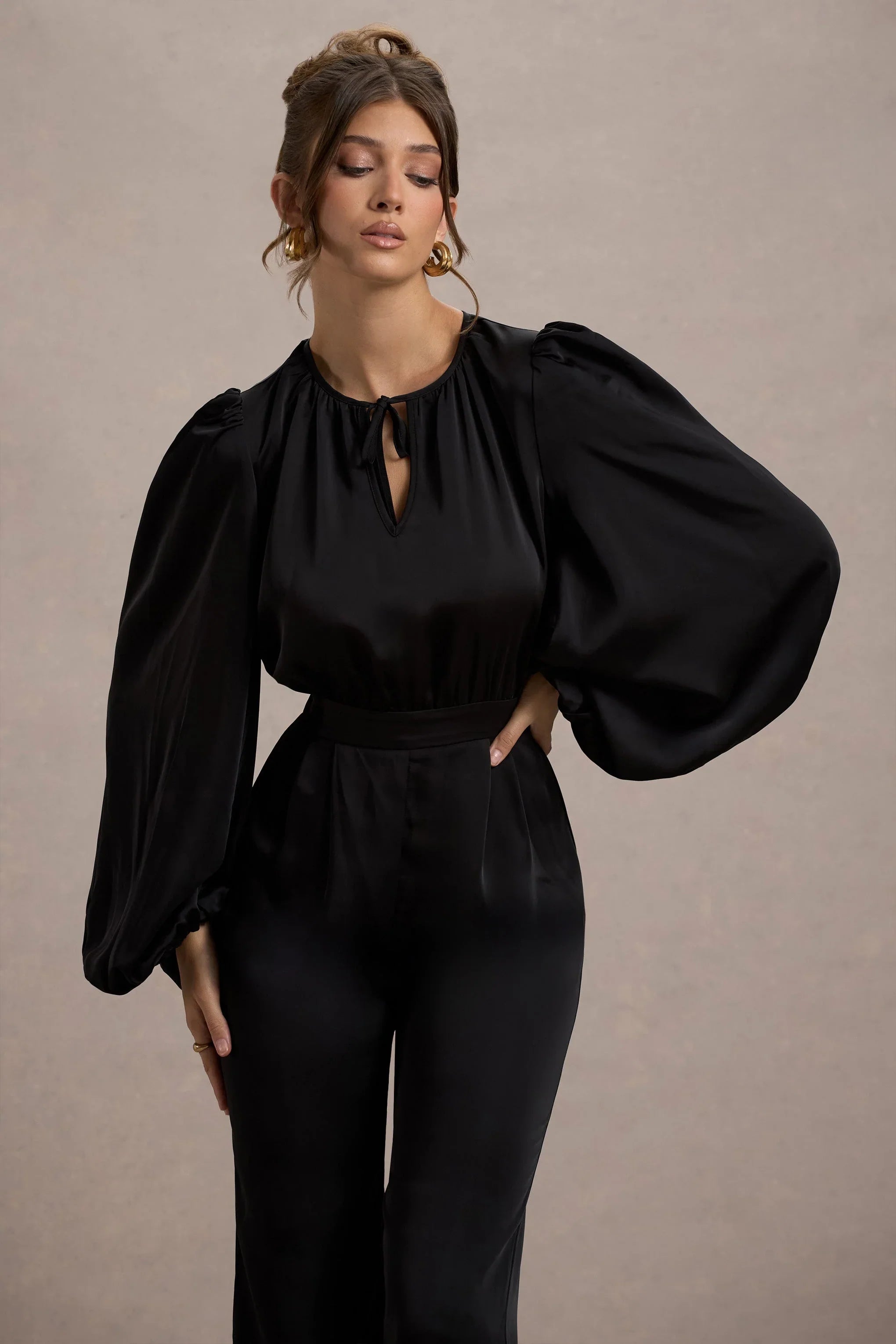 Suzanna is a statement-making jumpsuit that redefines sophistication with a modern twist. Crafted from luxurious premium satin, this jumpsuit features dramatic puff sleeves and a flattering wide-leg silhouette that exudes confidence and elegance. The sleek design highlights your waist while offering a contemporary take on evening wear. Perfect for any special occasion, keep Suzanna at the forefront of your look with bold accessories and sleek heels, ensuring you make a chic and unforgettable entrance.