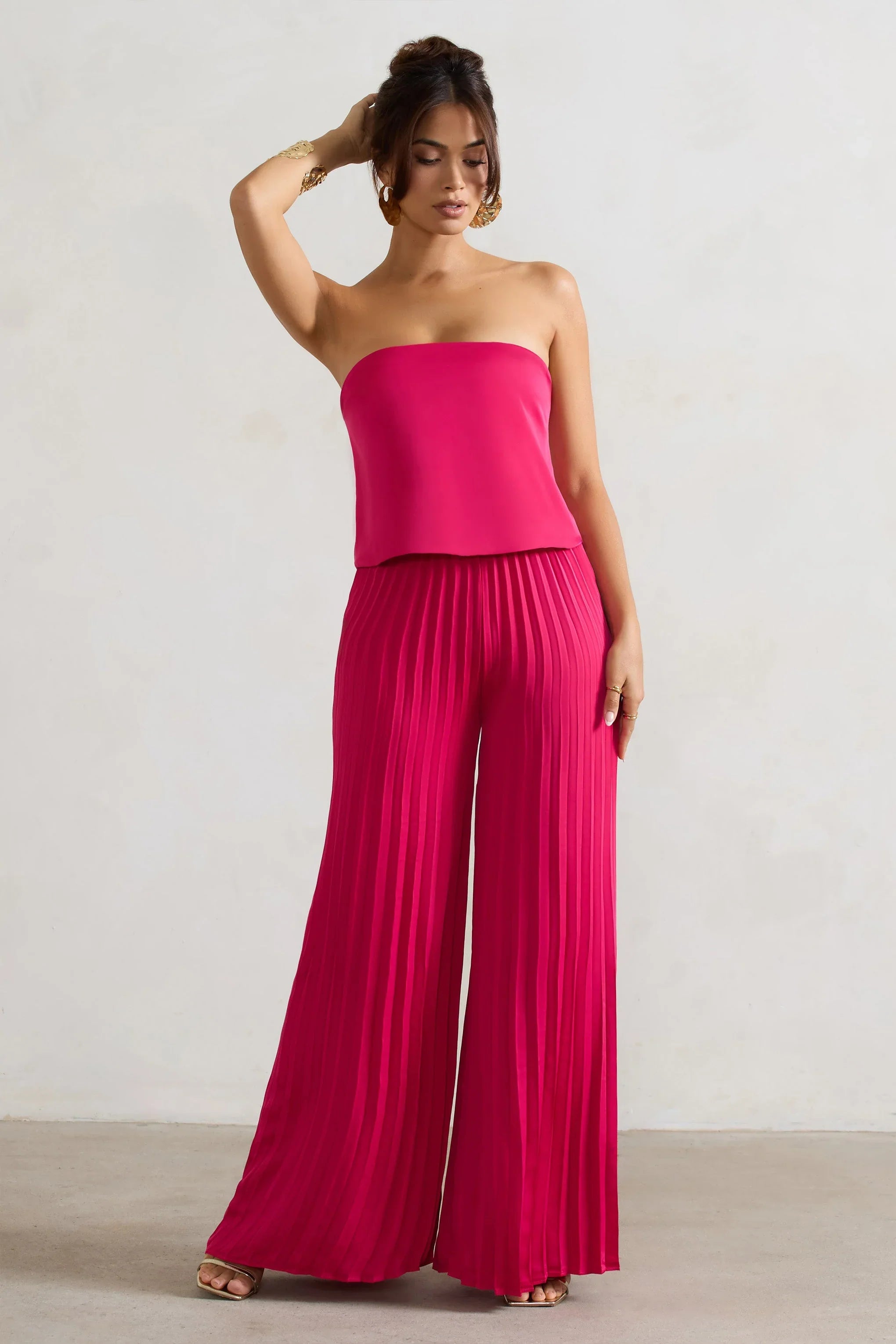 Add Tammi, our strapless staple jumpsuit to your evening repertoire this event season. Arriving in a dark pink shade of our premium satin, Tammi boasts a bandeau neckline with a draped bodice overlay. Elevated by elegant plisse legs, this jumpsuit is perfect for your next ladies day.