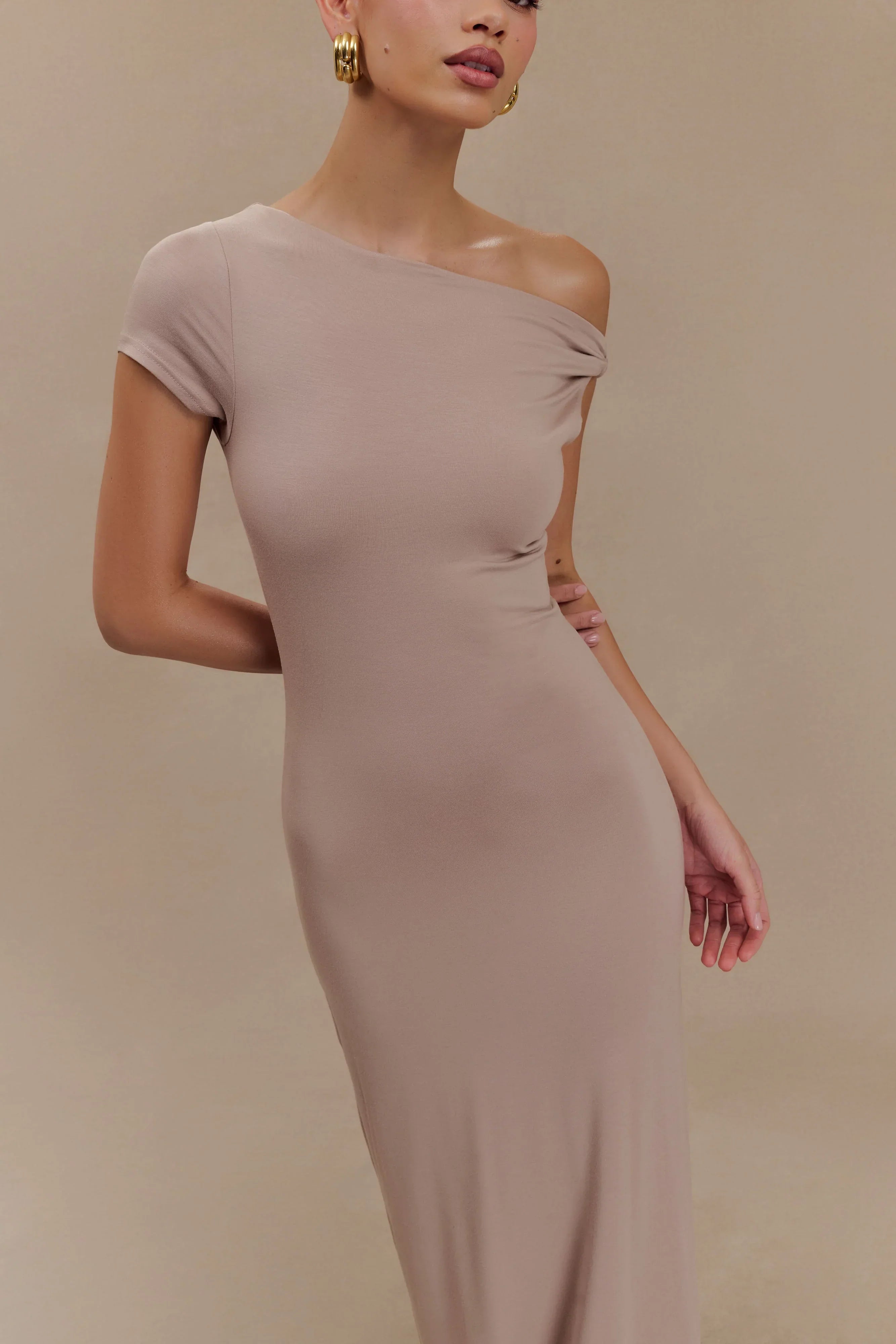 Step out in the TAMSIN Short Sleeve Modal Maxi Dress, a seamless fusion of style and comfort. The maxi length offers a graceful silhouette, while the asymmetrical neckline brings a modern edge. A knotted shoulder detail adds a subtle, chic accent, creating a look that’s effortlessly polished. Crafted from soft modal fabric, this dress ensures all-day comfort with an elevated feel. Perfect for both casual and formal occasions, it’s a timeless piece that makes a refined yet relaxed statement.