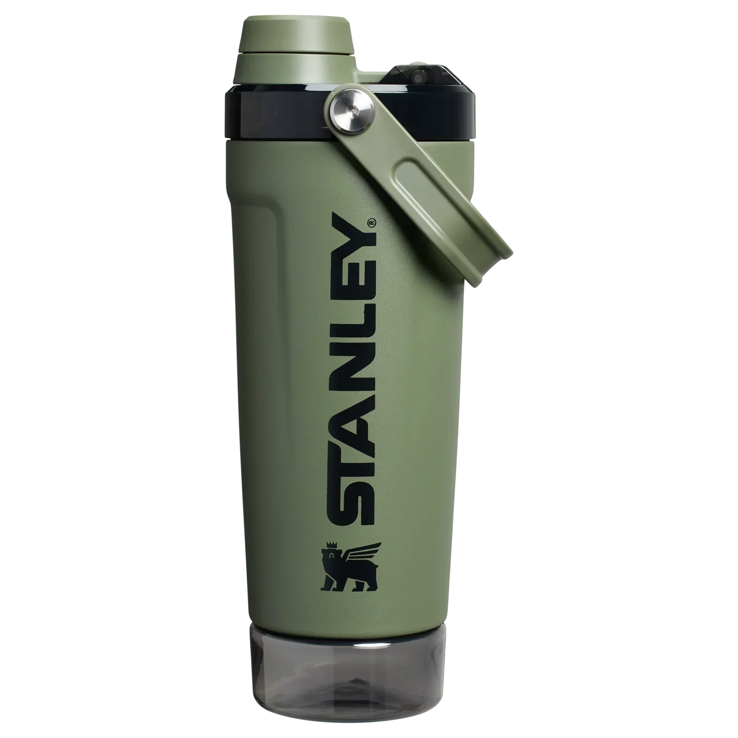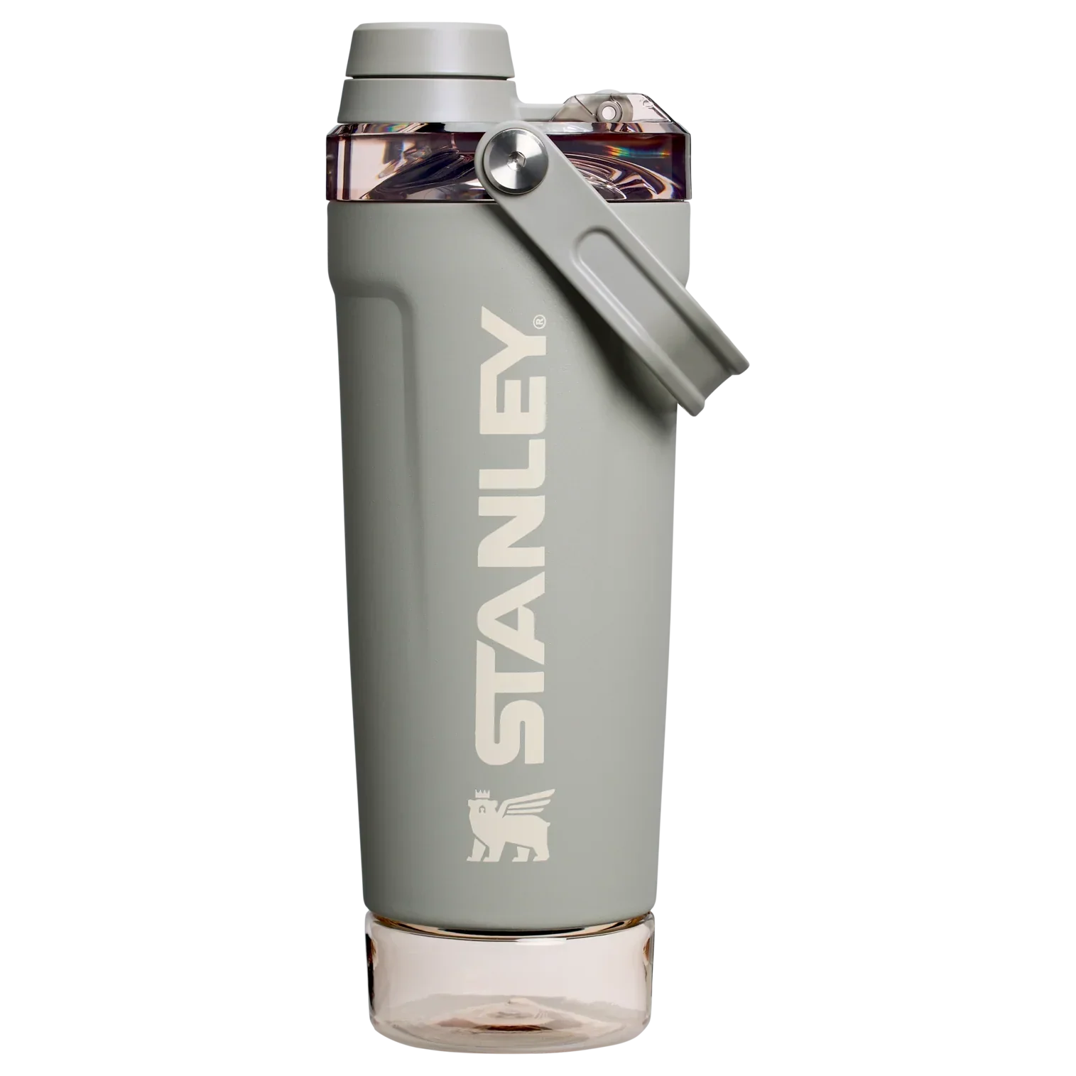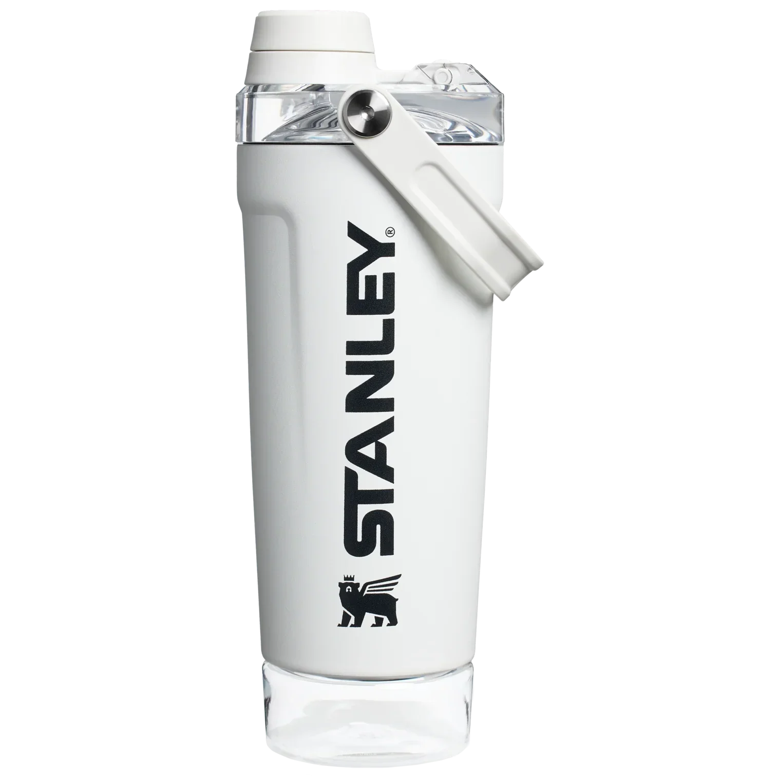 The 20-ounce Activate Shaker Bottle keeps your drink cold for hours, thanks to double-wall vacuum insulation. A rounded interior makes mixing and cleaning easy, while the fast flow spout provides a better sip. The inside is stamped with measurement lines and includes a removable strainer. The base storage container and the soft, easy-grip handle are great for on the go. And with a leakproof Tritan lid, it’s ready to toss in your bag.