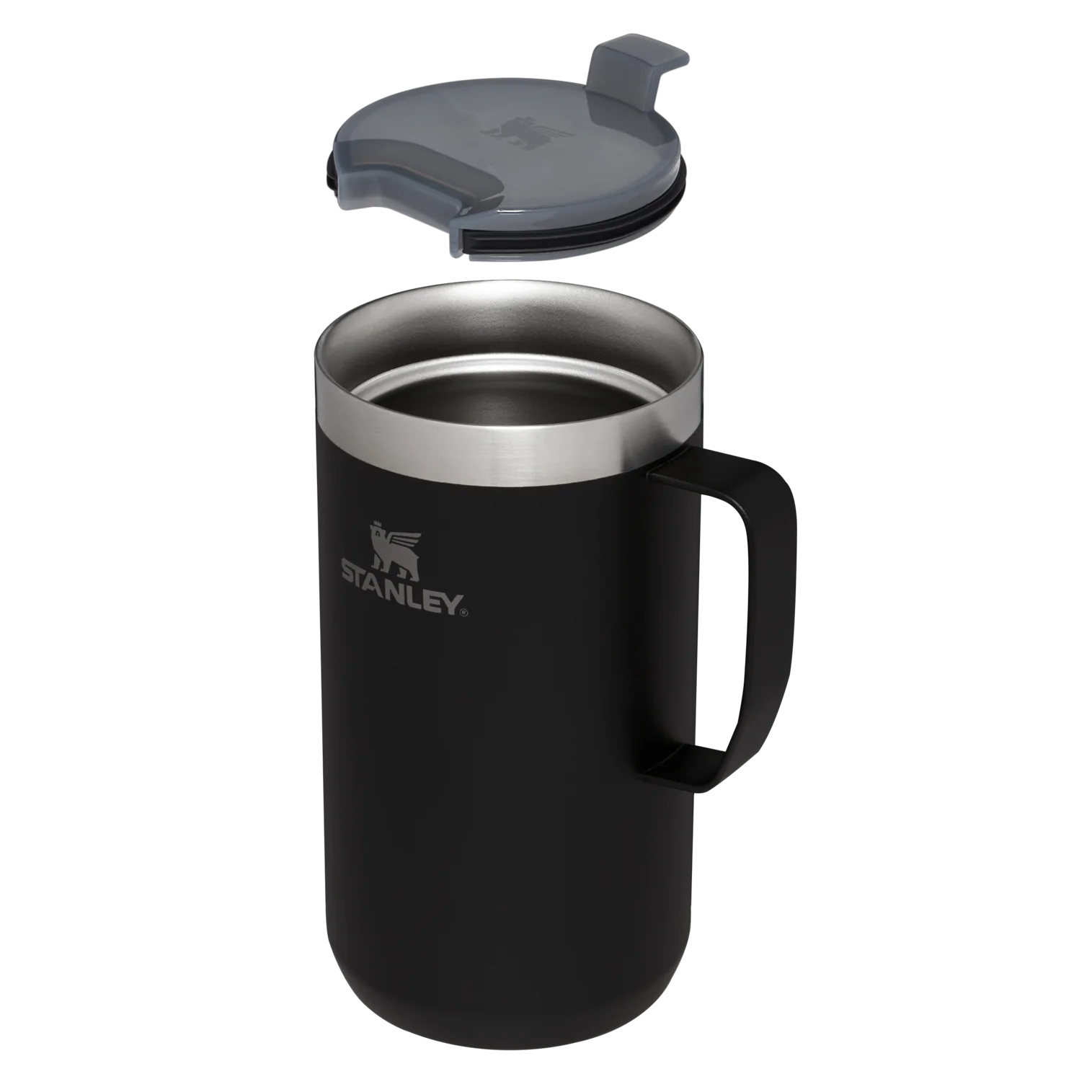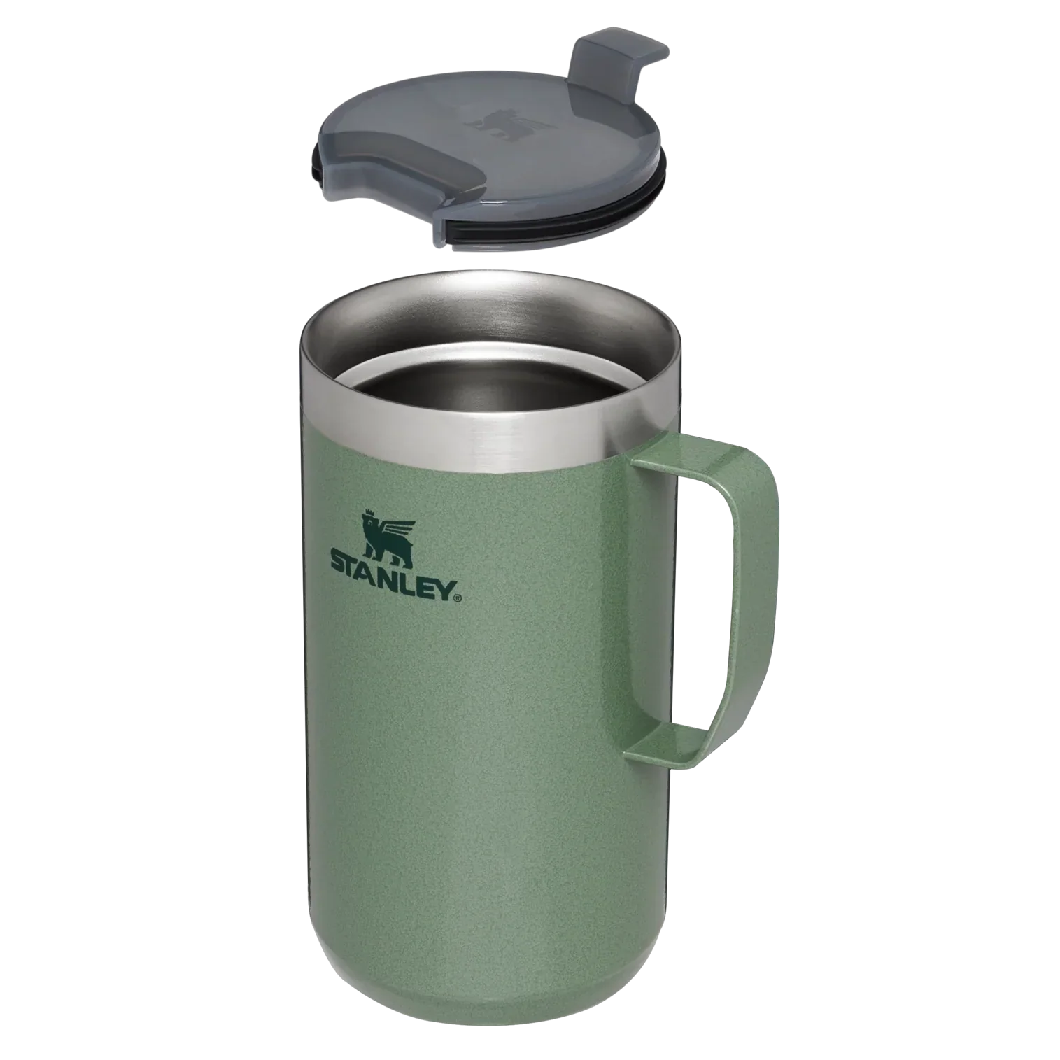 Just the right size for long mornings or anytime you need a fuller cup. The 24 ounce Stay Hot Camp Mug has the legendary performance you expect from a Stanley, with fewer trips to refill. This one is built to last, with solid 18/8 stainless steel construction. Double-wall vacuum insulation keeps your favorite drinks hot for hours, and the secure press-fit Tritan™ Drink-Thru Lid prevents splashes and makes sipping easy. Keep it with you in the backyard, take it on the road, or enjoy it while lounging by the fireside.