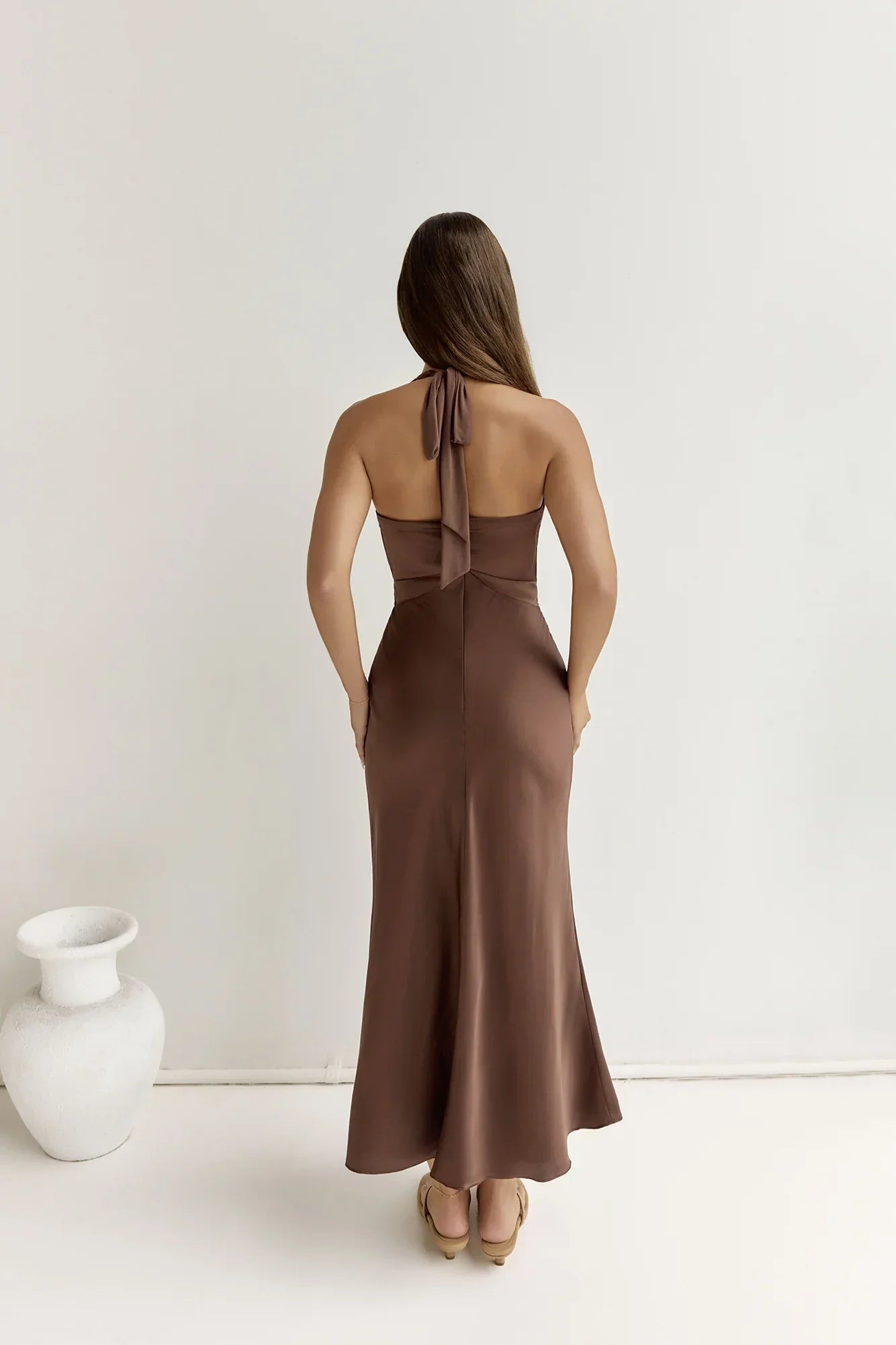 Celebrate moments at sundown in the To The Dreamers Satin Maxi Dress, a statement piece made for every occasion. A classic silhouette in soft satin fabric, this dress features mesh panelling to the bust and a halter tie made to turn heads in. Style with heels and gold adornments.