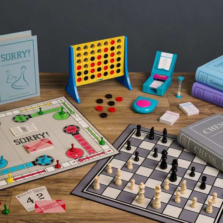 Discover endless family fun with our Vintage Bookshelf Collection – a delightful 15-pack of games elegantly disguised as classic novels. Unfold each fabric-bound treasure to reveal a world of interactive entertainment, perfect for creating cherished moments and fostering strong bonds with loved ones. The full set includes Boggle, Candy Land, Catch Phrase, Chess, Chutes and Ladders, Clue, Connect 4, The Game of Life, Monopoly, Mystery Date, Scrabble, Scattergories, Sorry!, Taboo, and Yahtzee.