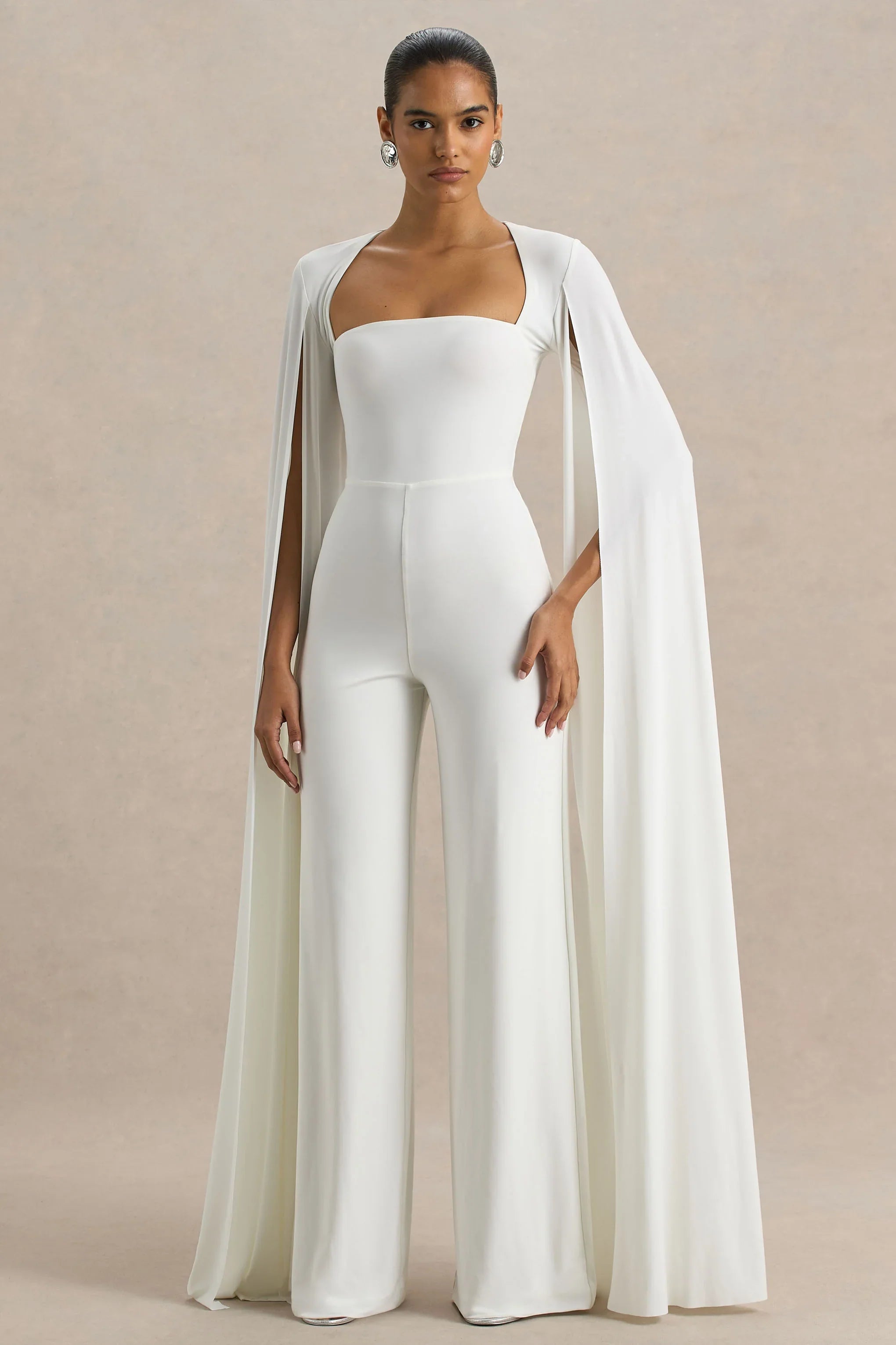 Command the rooms attention in our latest head turner, Zara. Curated from our premium scuba crepe, in a bold white hue, this jumpsuit will sculpt your curves gorgeously ensuring you feel as good as you look. Featuring a chic square neckline and dramatic cape sleeves, this piece exudes glamour and elegance at any upscale occasion. Style with sleek heels for a look that'll have all eyes on you.